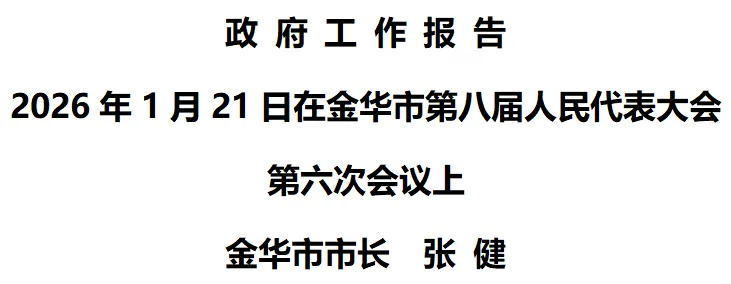 各位代表,2025年主要目标任务顺利完成,为“十四五”收官画上了圆满句号。“十四五”时期是金华发展极不平凡、极不寻常的五年,是牢记嘱托、感恩奋进取得重大成就的五年。最令人鼓舞的是习近平总书记亲临金华考察调研,赋予金华“根据实情、发挥优势、扬长补短、再创辉煌”的时代使命,为“新时代、新金华、新发展”提供了根本遵循、带来了重大机遇。最令人振奋的是“港”“廊”“链”主战场战果累累,全市经济总量、规上工业增加值、固定资产投资、进出口总额、存贷款余额、全社会用电量、常住人口等在全省占比提升、实现进位,多项“国字号”改革试点、战略平台落地金华。最令人难忘的是我们众志成城抵御世纪疫情冲击,有力有效应对中美贸易摩擦等重大风险挑战,精彩承办省运会,圆满协办杭州亚运会,在大战大考中交出了高分答卷。最令人欣慰的是我们大力弘扬“六干”作风,学习推广“义乌发展经验”,持续提振“善谋、强攻、求变、争先”精气神,借势推动“上争资源、外引项目、内聚动能”取得新突破、迈上新台阶,全市上下一心谋发展、比拼创一流的氛围更加浓厚。