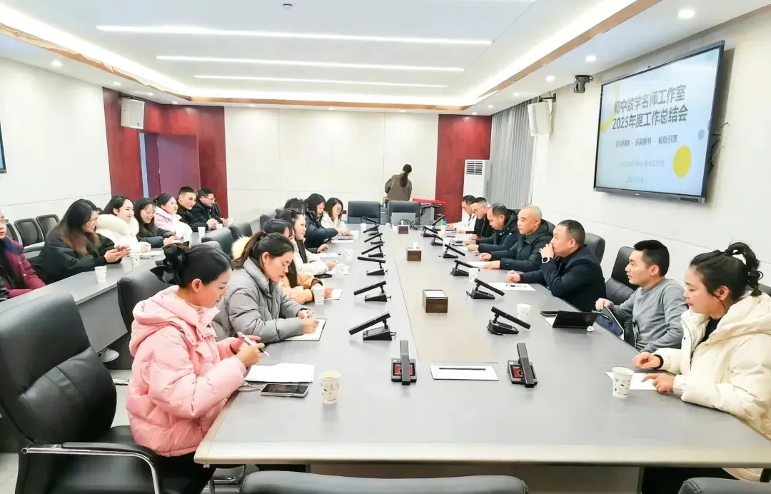 随后,领衔人苗茂作总结发言,全面梳理了 2025 年工作室的工作成效:“一课一案三单” 教学模式在全县多所学校推广,核心素养培育常态化落地,中考备考系列活动助力全县初中数学发展,工作室成员近2年6人晋升中级职称,新增省级骨干1人、市级骨干3人、县级骨干6 ,斩获市级教学成果奖2项、县级各类奖项20余项;辐射引领成效突出,送课下乡覆盖 6 所乡镇学校,优质资源惠及全县 初中近400余名教师,受益师生超1200人次。同时强调,要正视本次会议提出的问题,以问题为导向规划 2026 年工作。