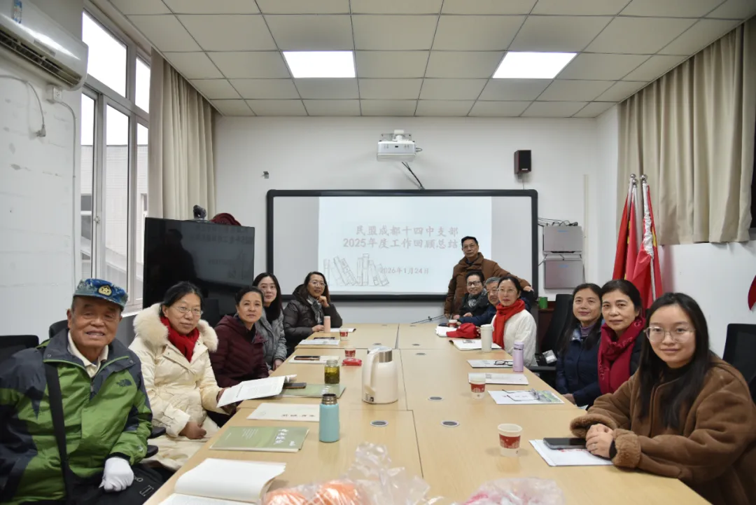 1月24日,民盟第十四中学支部在石室蜀华学校二楼会议室召开2025年度工作总结回顾会。会议由支部主委李谦主持,支部盟员及入盟积极分子等共12人参加,民盟成都市委会社会服务处二级调研员徐卫红受邀参加。