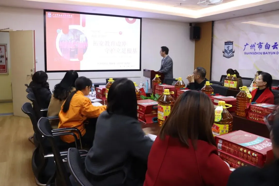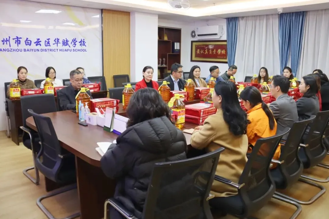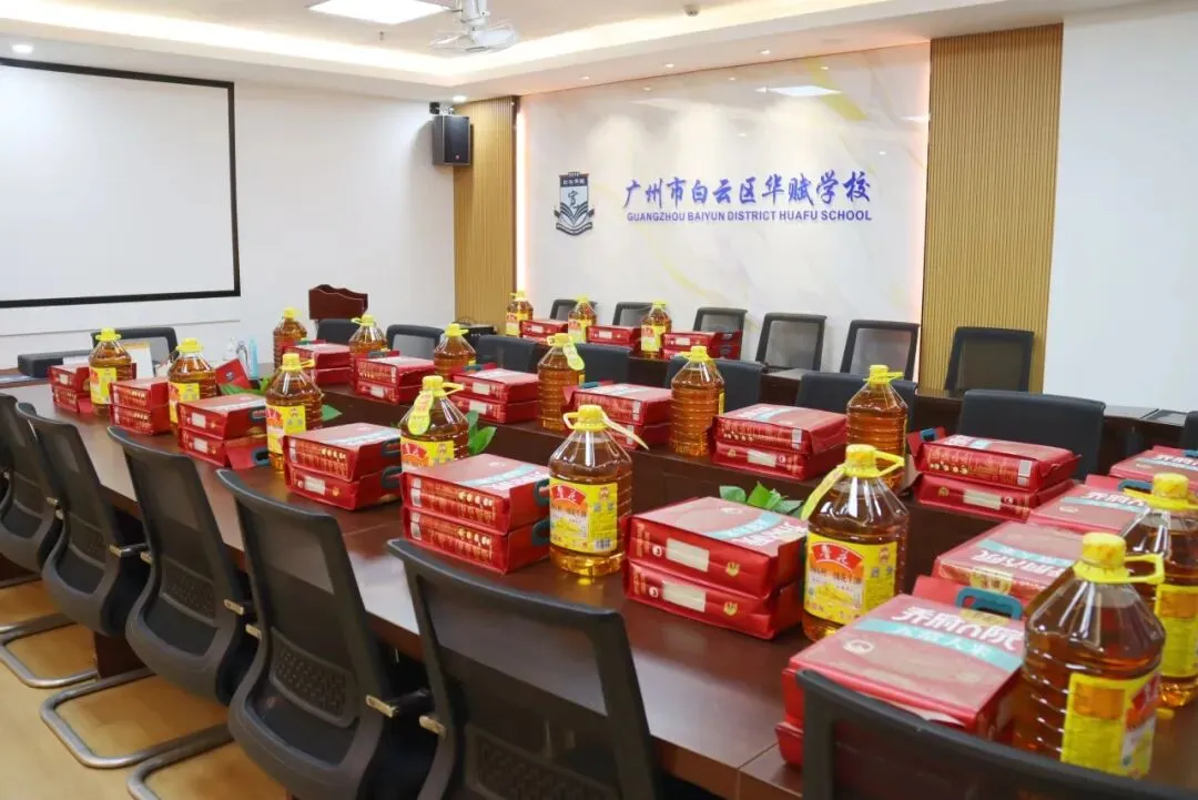 2026年1月26日,白云华赋全校行政会议在行政会议室顺利举行。会议现场,油、大米等暖心礼品已整齐摆放于桌面,提前传递出学校对行政人员的关怀与新春祝福。全体行政人员齐聚一堂,以复盘过往、谋划未来为核心,共商学校发展大计。