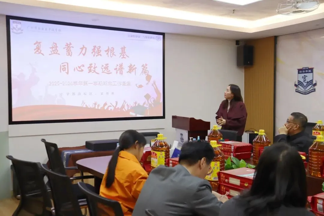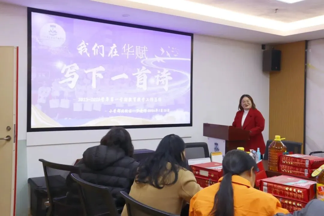 小学北校区罗主任以“我们在华赋写下一首诗”为主题,梳理年度工作亮点,明晰下学期工作计划,凝聚团队奋进力量。
