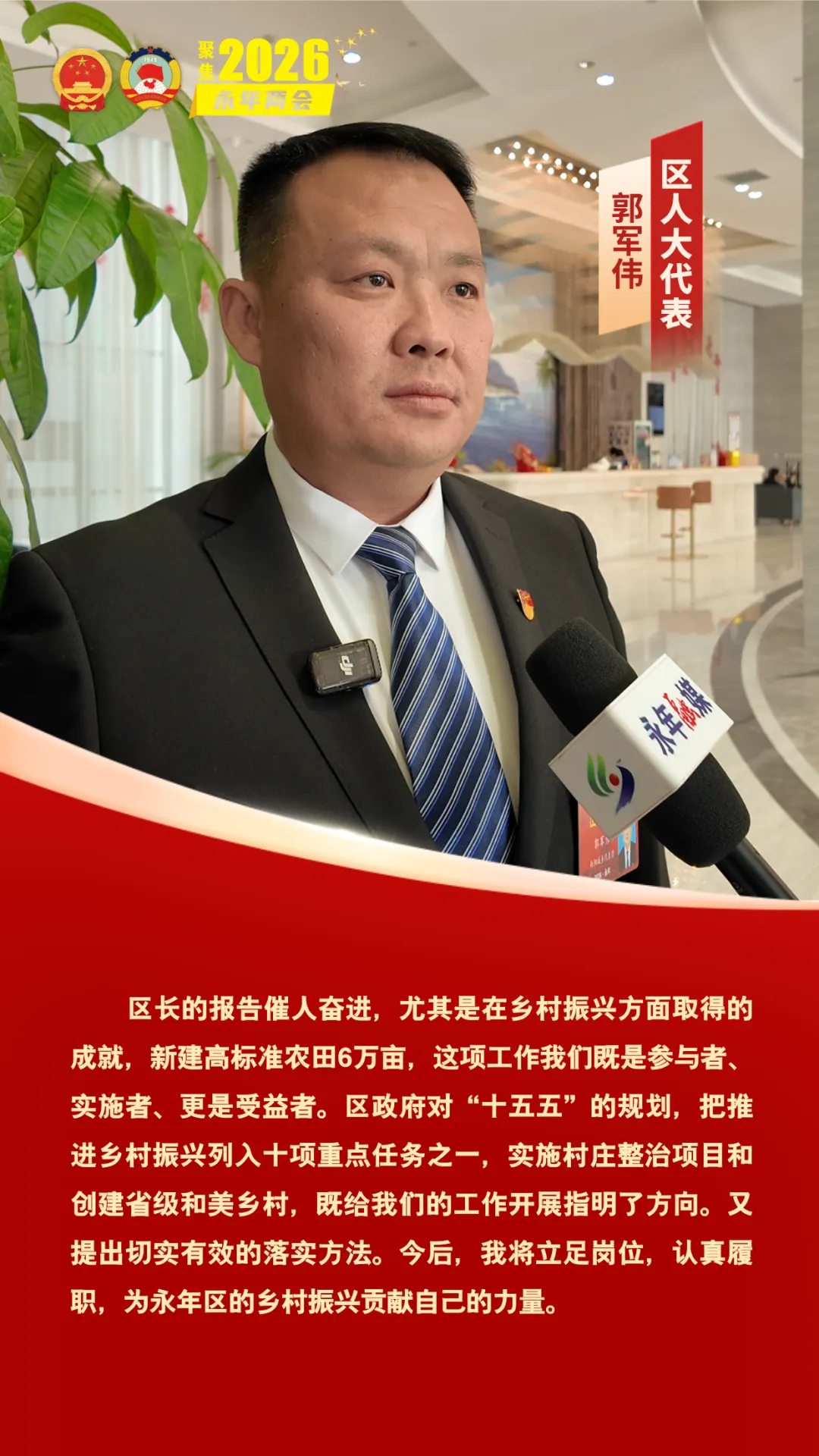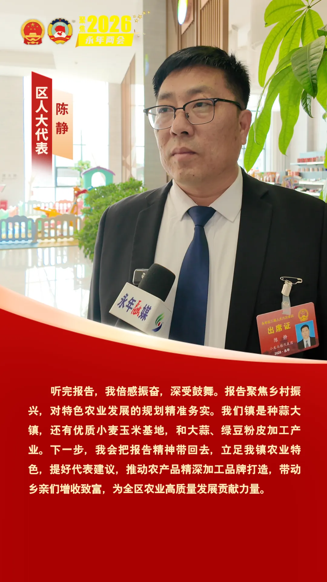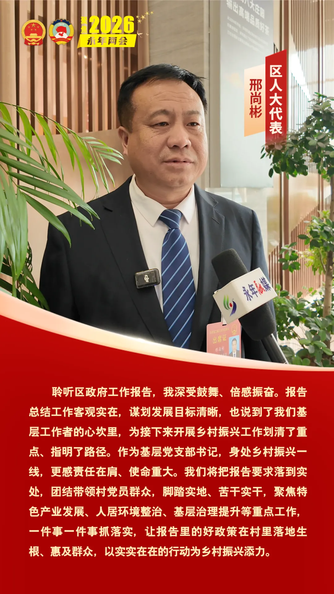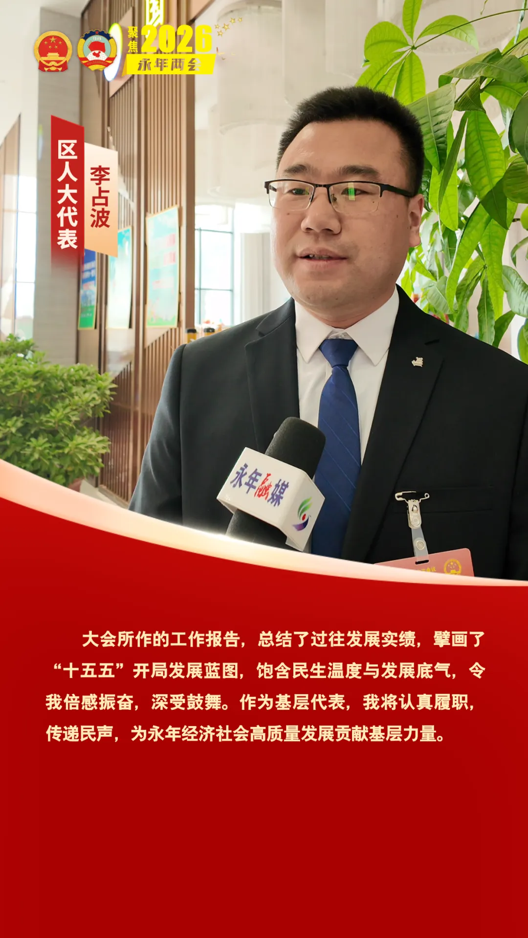 1月27日上午,邯郸市永年区第二届人民代表大会第六次会议开幕。会上,求真务实、催人奋进的政府工作报告引发了区人大代表们的热烈讨论。代表们纷纷表示,报告站位高远、内涵丰富,既锚定高质量发展的核心目标,又饱含民生温度,为全区未来发展勾勒出清晰蓝图,让人倍感振奋、满怀期待。