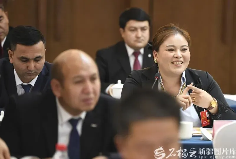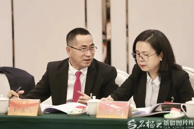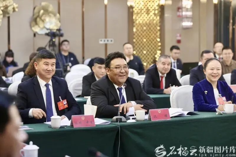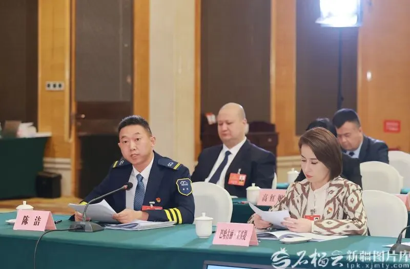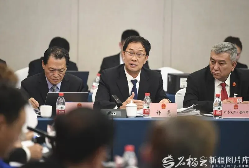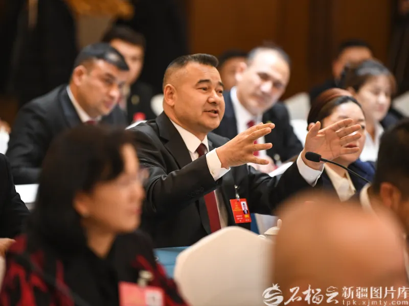 1月27日,许亮代表在参加和田地区代表团审议时,就促进南疆高质量发展等内容发言。石榴云/新疆日报记者 汤永摄