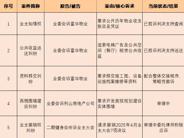 2. 财务公开与制度构建:公示2018-2025年度公共收益收支情况;同时,系统制定并落实物业费、公共收益的预算、使用与监督制度。