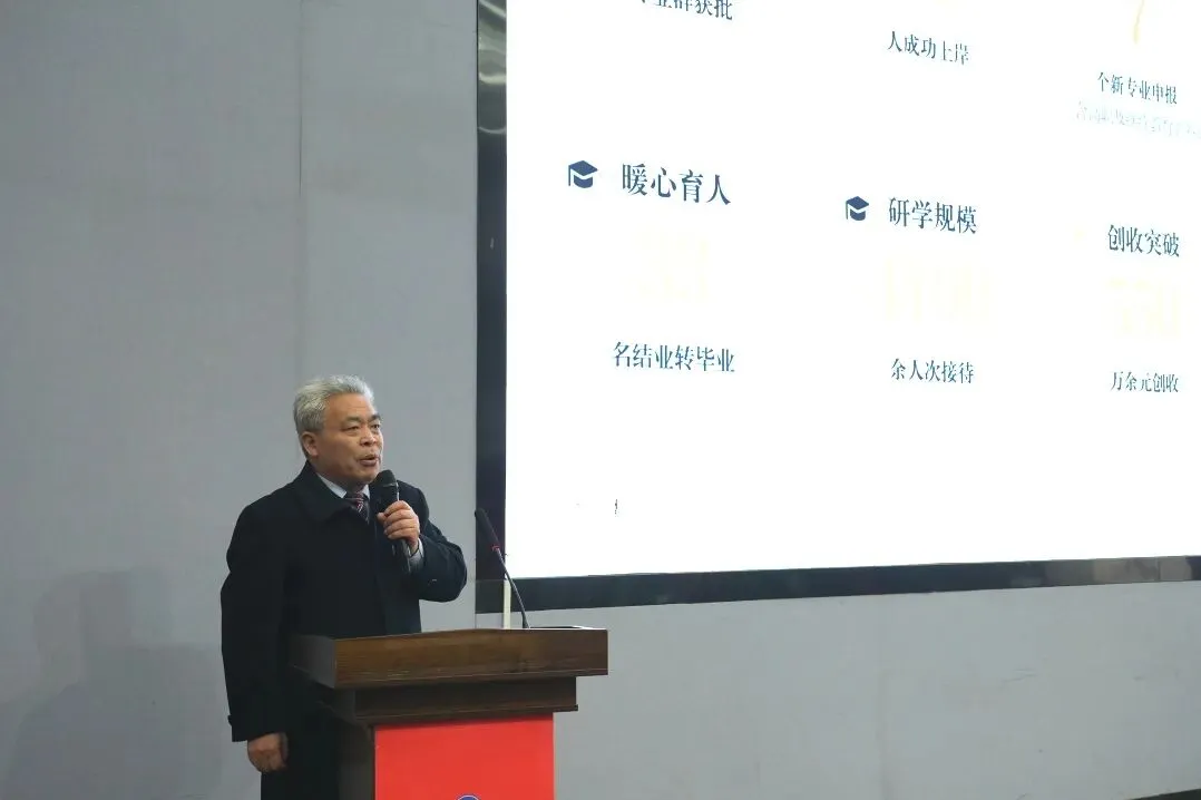 承前启后谋发展,继往开来谋新篇。督导专员、党委书记王卫林作2025年度工作总结及未来规划报告。报告全面回顾了学院全年在人才培养、师资建设、招生就业、校园治理等方面取得的亮眼成绩,客观分析了发展过程中面临的挑战与不足。同时围绕学院发展定位,明确了新一年的核心任务、工作目标与实施举措。