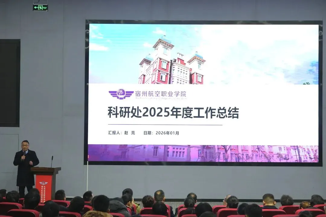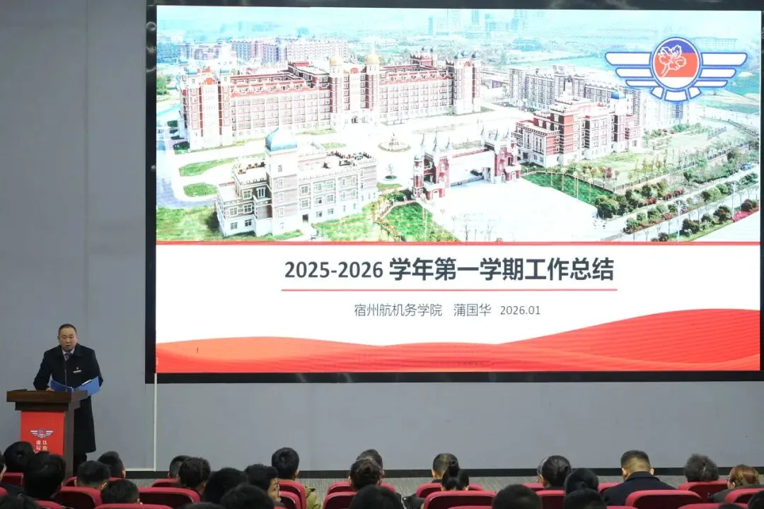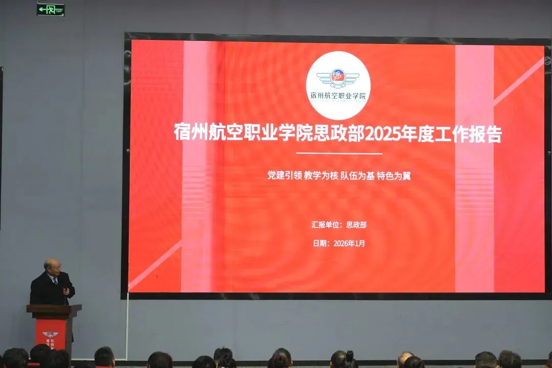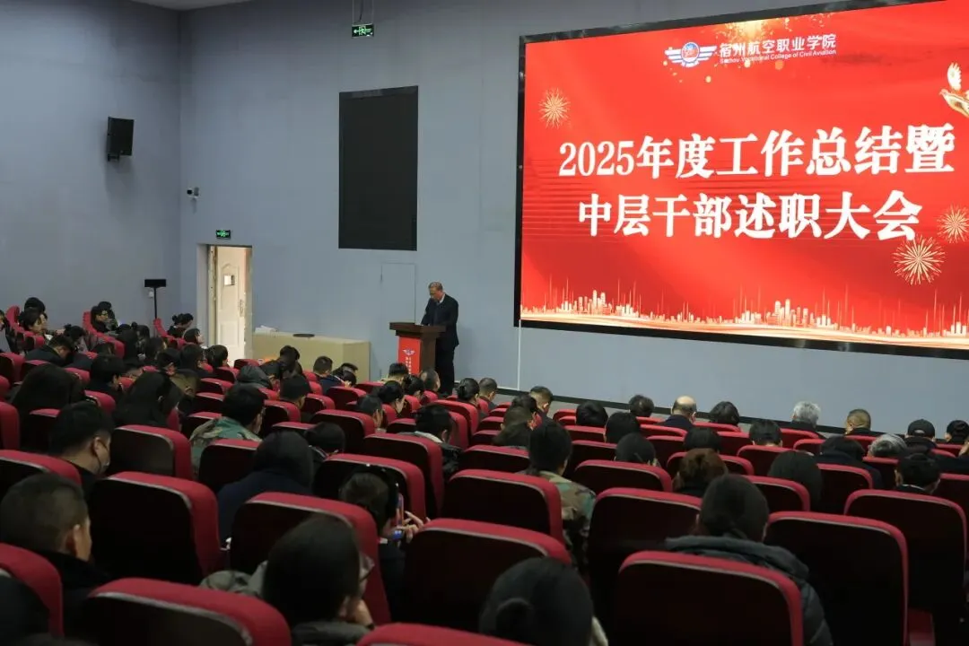 征程万里风正劲,重任千钧再出发。本次工作总结暨中层干部述职大会的召开,既是对2025年工作的全面复盘,更是一份催人奋进的动员令。新征程的号角已经吹响,新一年的画卷正待描绘。全体宿航人将以先进为榜样,以荣誉为动力。携手并肩、凝心聚力,共同谱写宿州航空职业学院高质量发展的新篇章!