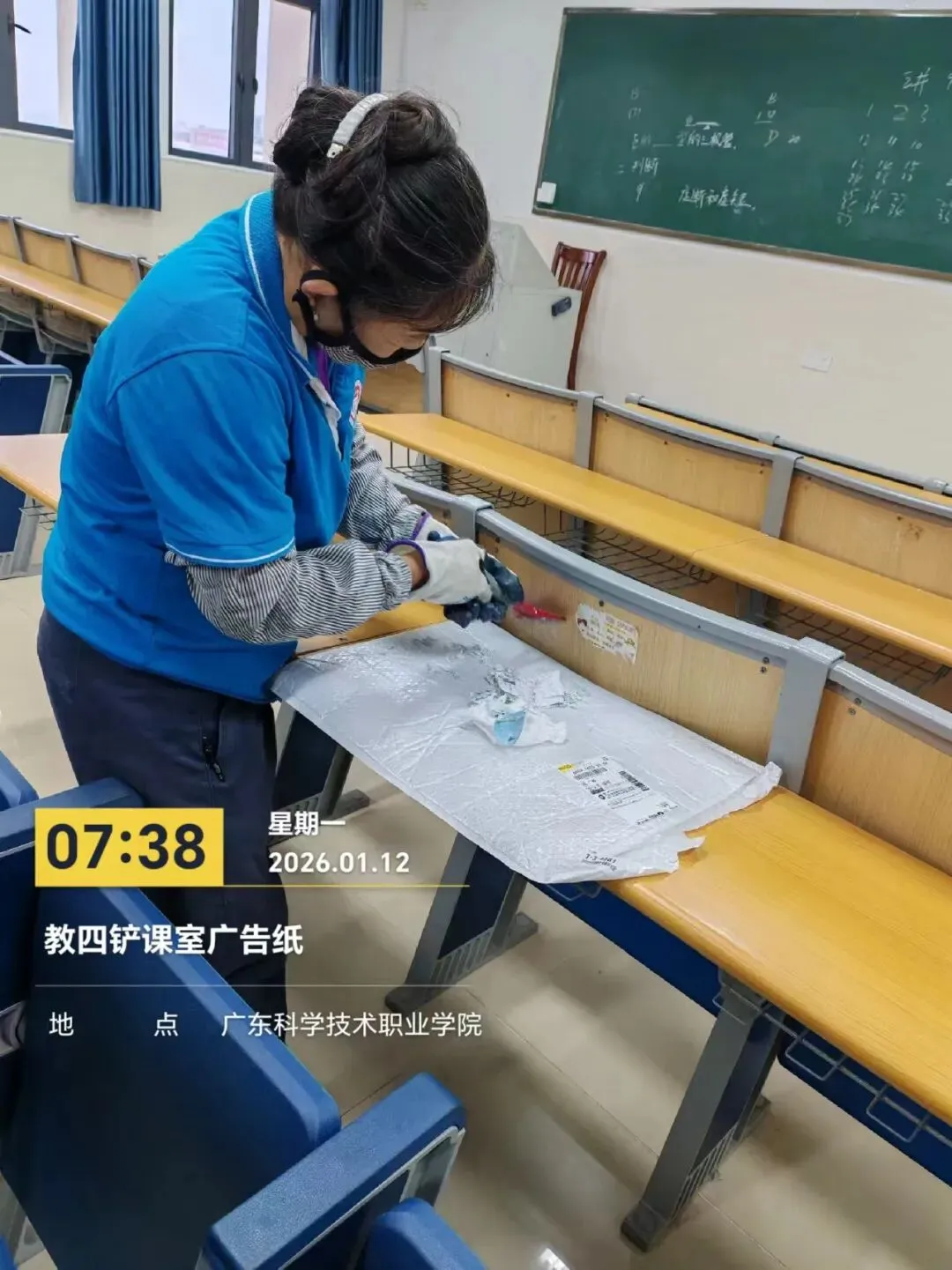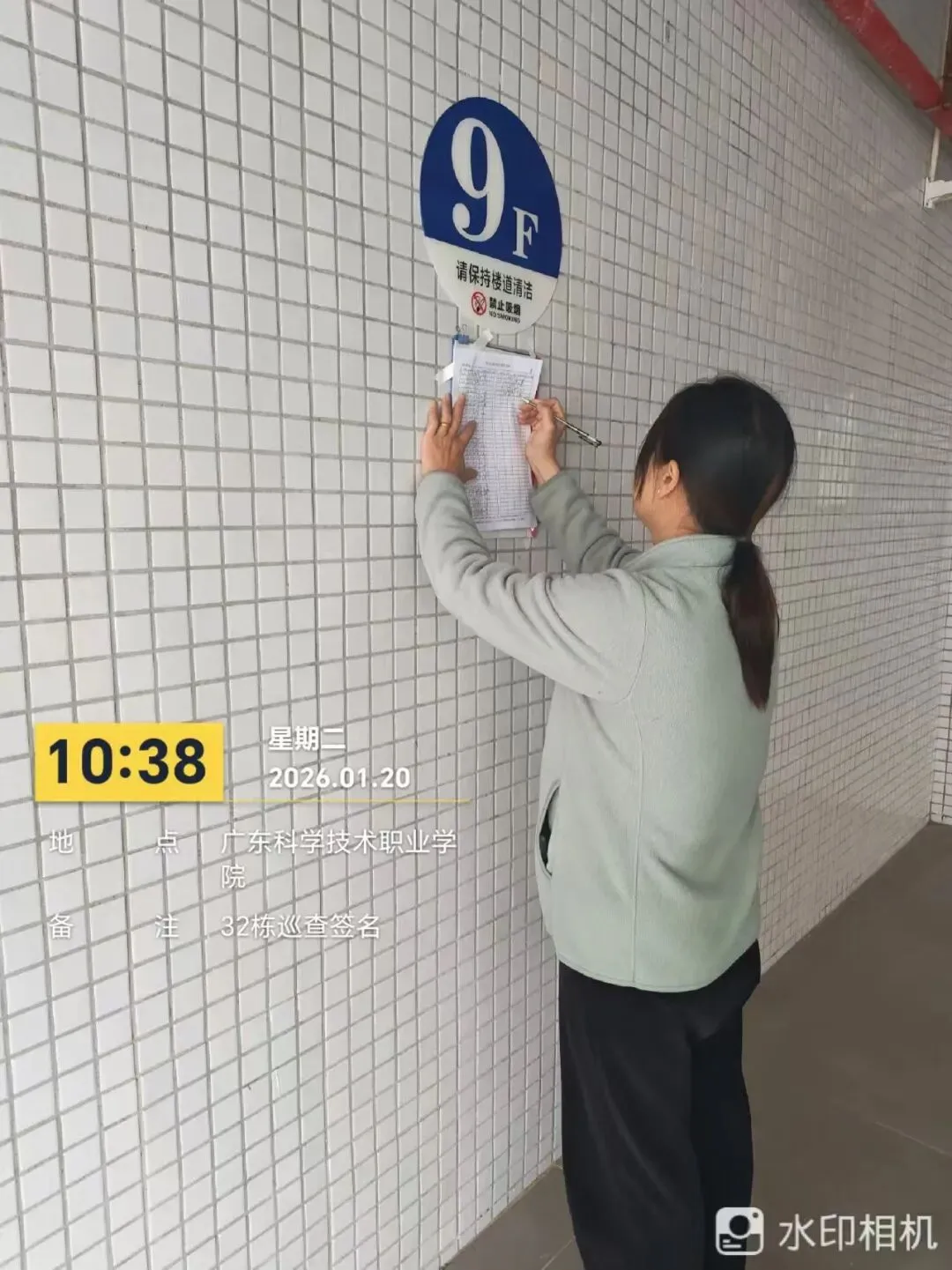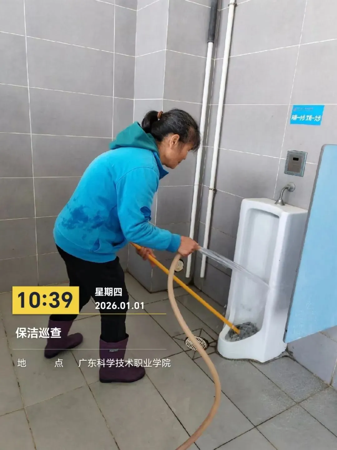 6、完成教学楼、实训楼、图书馆、双创楼等楼宇厕所、走廊楼梯全面保洁工作;