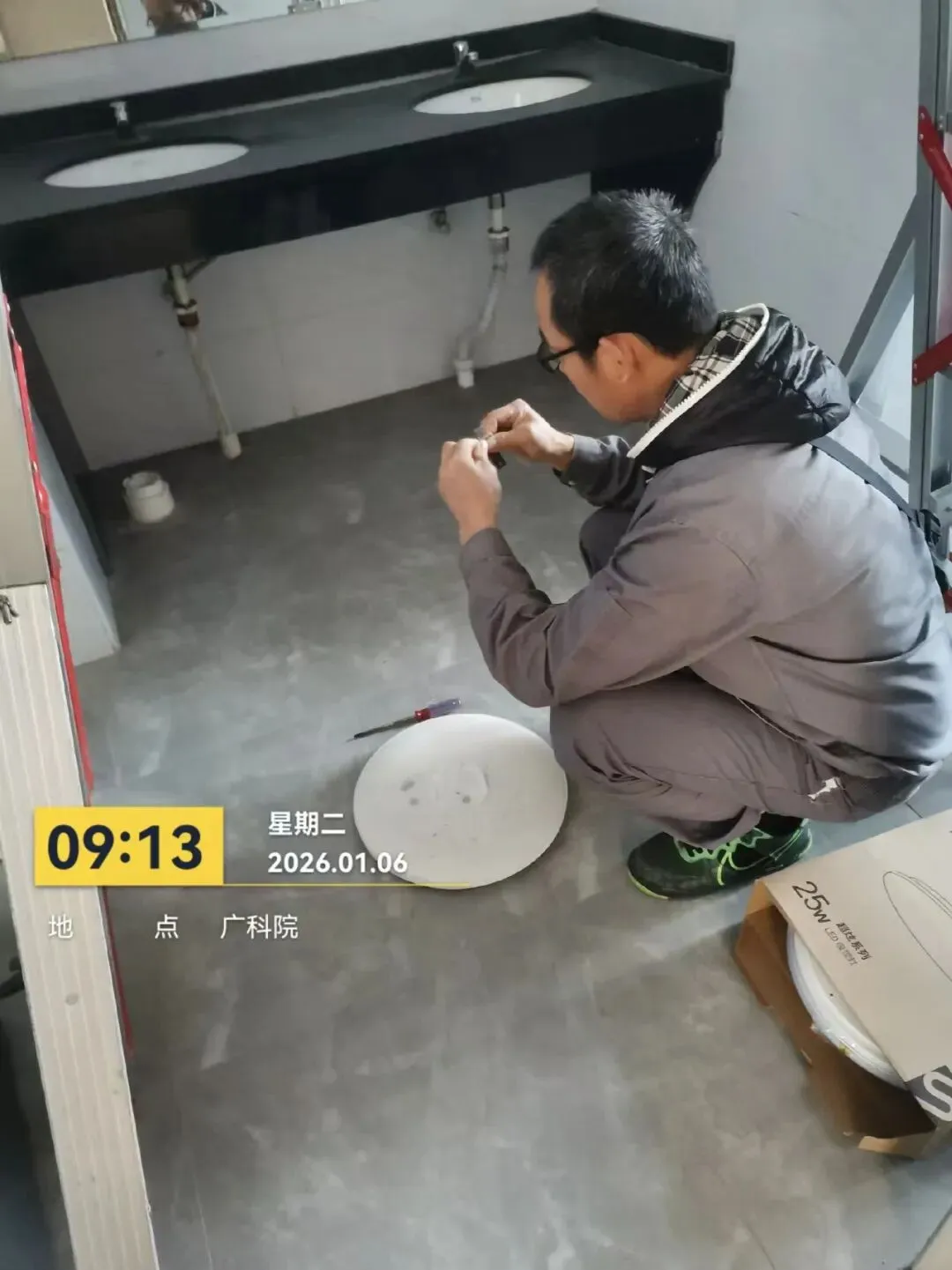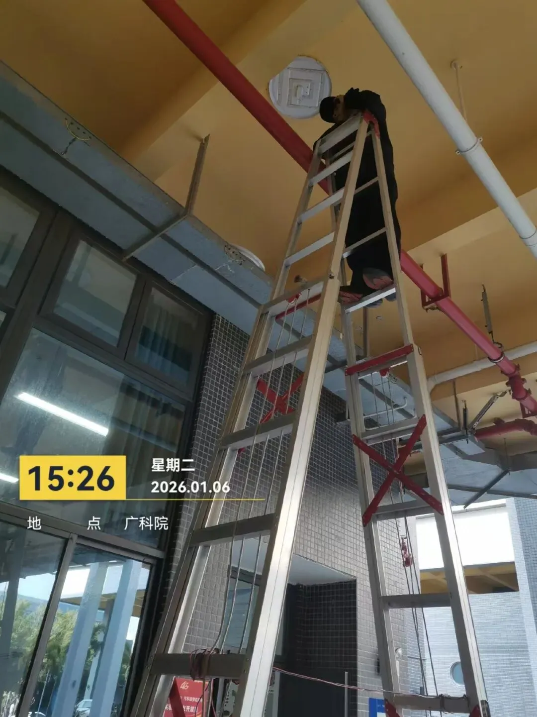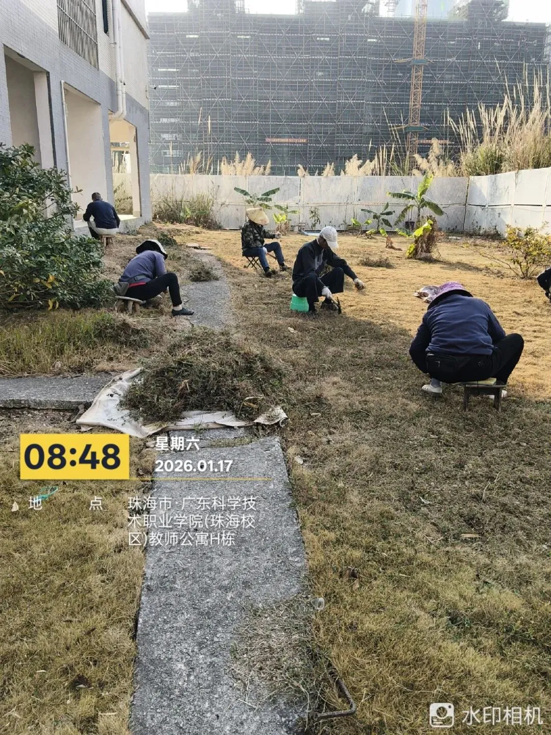 6、完成教学楼、实训楼、图书馆、双创楼等楼宇厕所、走廊楼梯全面保洁工作;