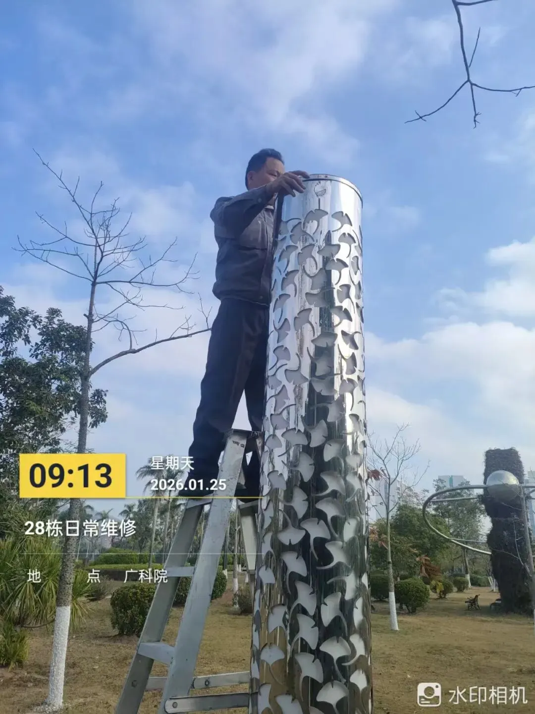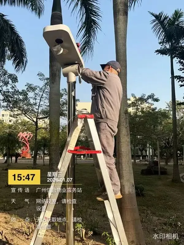 12、完成外围矮路灯蜘蛛网进行清扫,清洁所有垃圾桶内外桶及休闲椅凳;