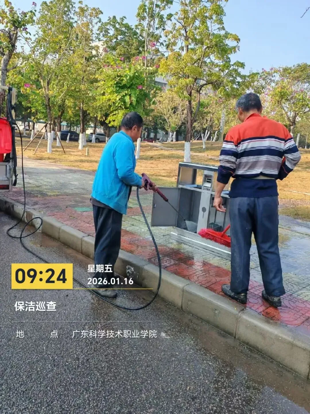9、完成学生公寓所有学生公寓天井地面高压冲洗;