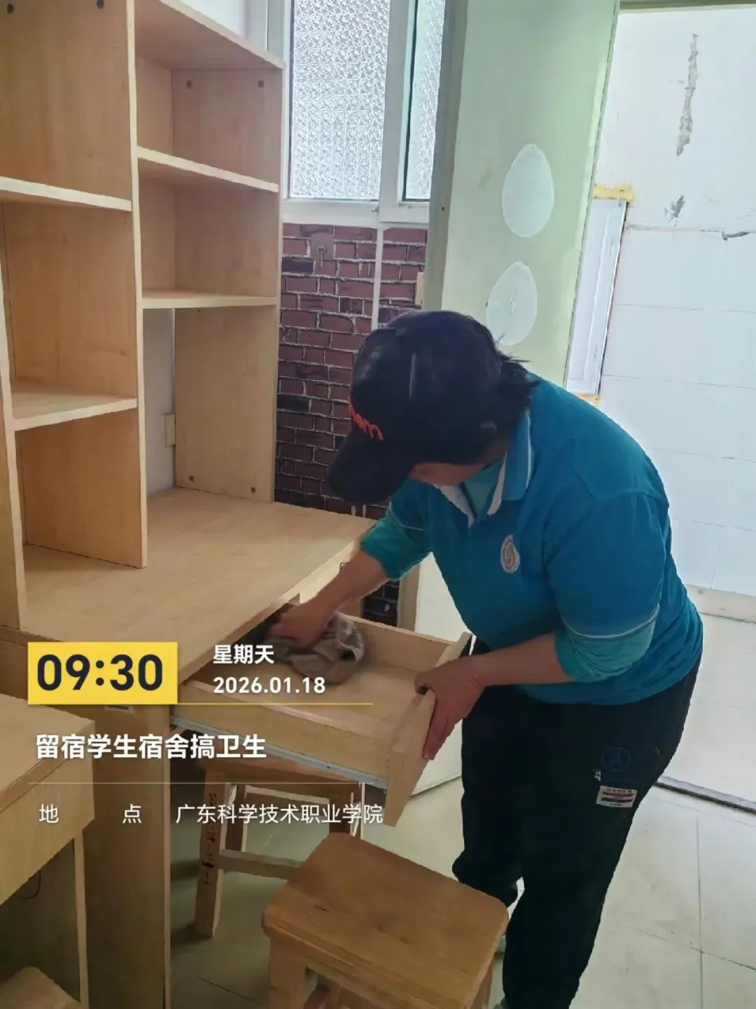 8、完成学生公寓2栋3栋北楼假期留宿宿舍保洁工作;