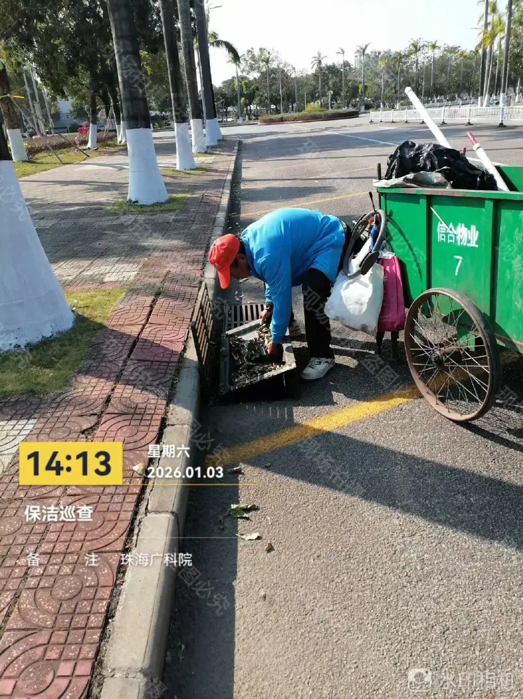 3、完成清扫校道,清倒行人道垃圾桶的垃圾,清理雨水井的落叶、泥沙和路面积水的保洁工作;