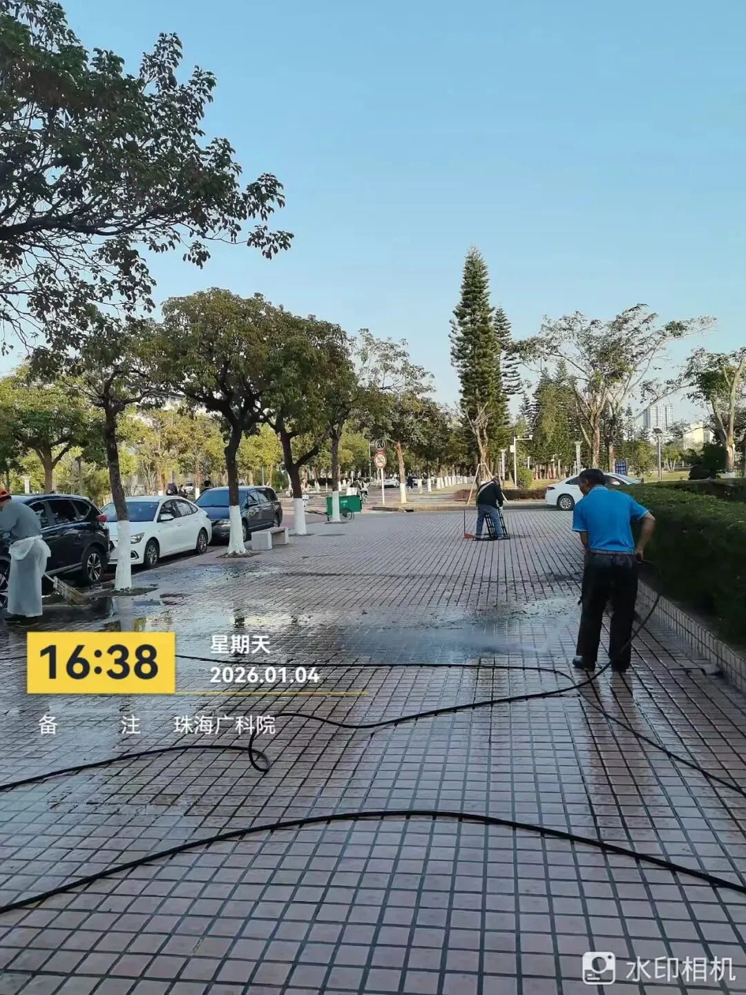 10、完成湖滨路、北门环岛至学一路两边人行道地砖高压冲洗;