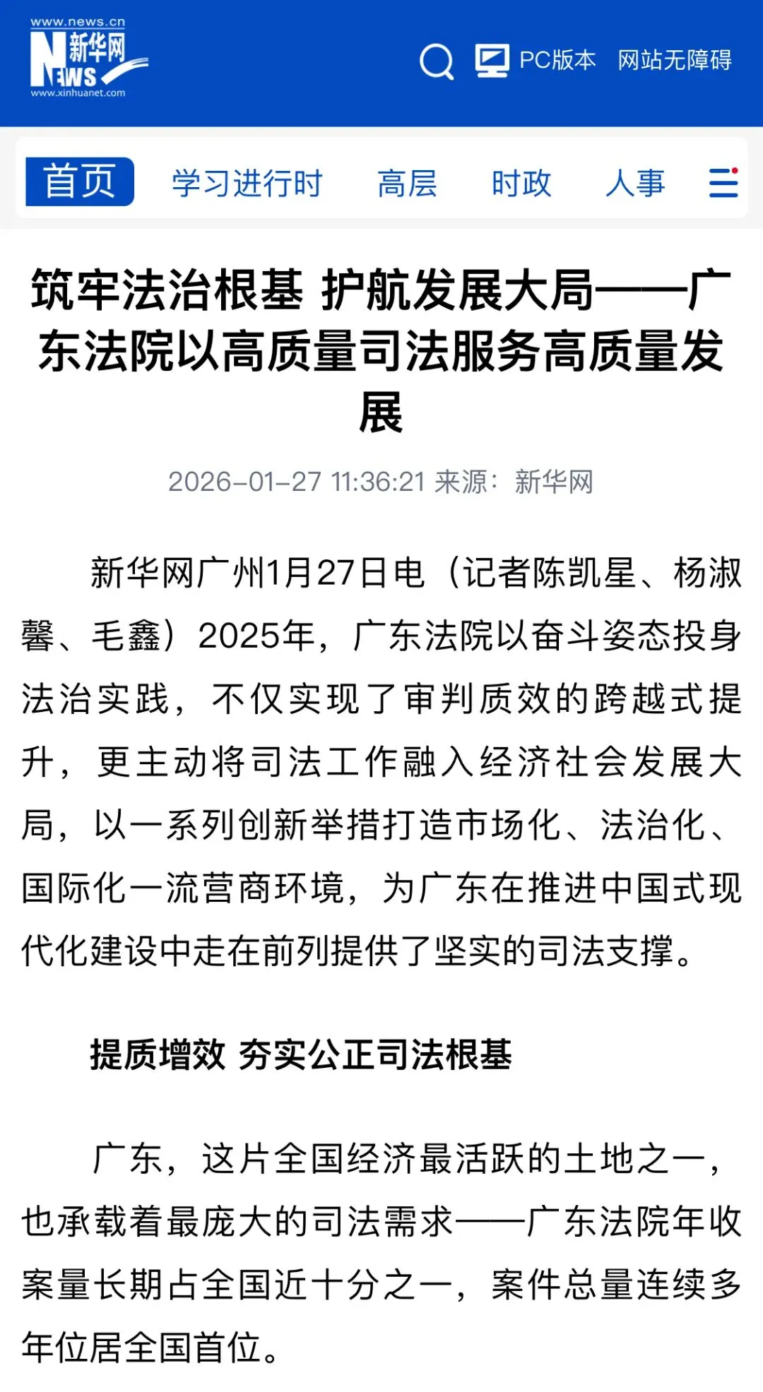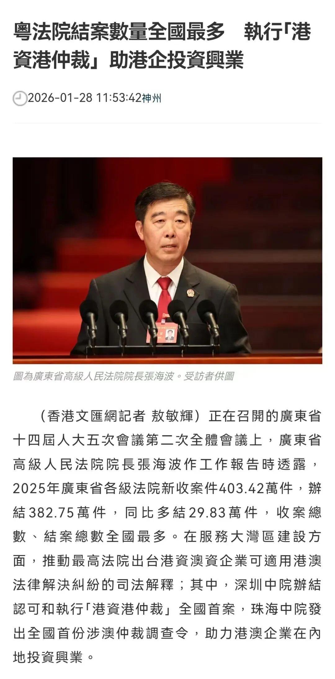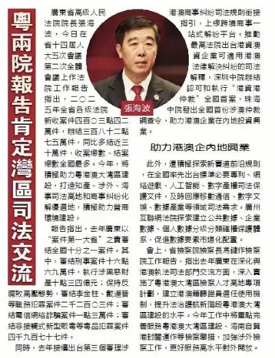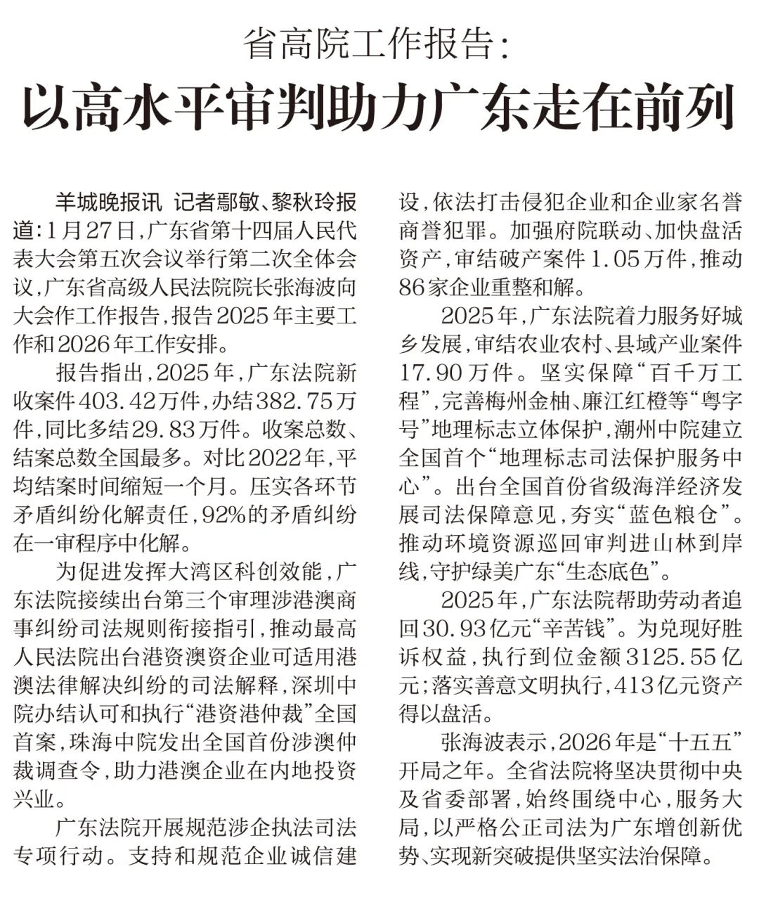 张海波在报告中指出,2025年广东法院争创审判履职新成效,服务中心大局、促进公平正义、增进人民福祉。