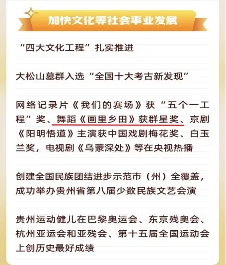 1月27日,贵州省第十四届人民代表大会第四次会议在贵阳召开。开幕会上,省长李炳军代表省人民政府向大会作政府工作报告。我校原创舞蹈作品《画里乡田》被正式写入贵州省政府工作报告,成为报告加快文化等社会事业发展的亮点之一。该作品由我校音乐舞蹈学院与六盘水市文化馆联合打造,在第二十届群星奖评选中荣获舞蹈类群星奖。《画里乡田》是贵州省唯一获奖作品。