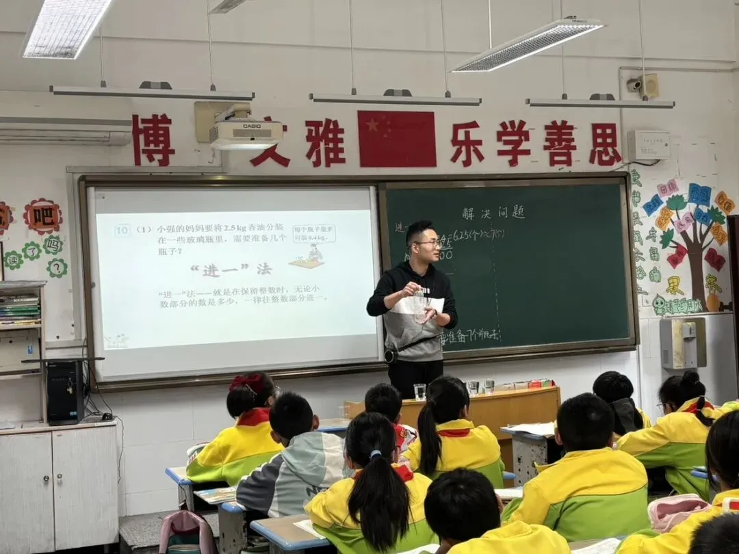 深耕课堂:我们尝试构建以“核心素养导向的学习目标”和“结构化情景化的学习内容”等为核心的课堂,并在教学中实践。 探索“大单元教学”本学期,我们以 《小数乘除法》《简易方程》 《多边形的面积》 等单元为重点,开展了大单元教学研究。在《多边形的面积》单元,我们以 “转化” 思想为主线,串联各课时教学,帮助学生构建知识网络。在《小数乘除法》单元,则着力于从知识深化与应用。 聚焦“数的运算一致性”,在“小数乘除法”教学中,我们专题研讨了如何沟通整数、小数运算的算理与算法,在教学中,引导学生将整数乘除法运算律迁移到小数中,理解运算的一致性。