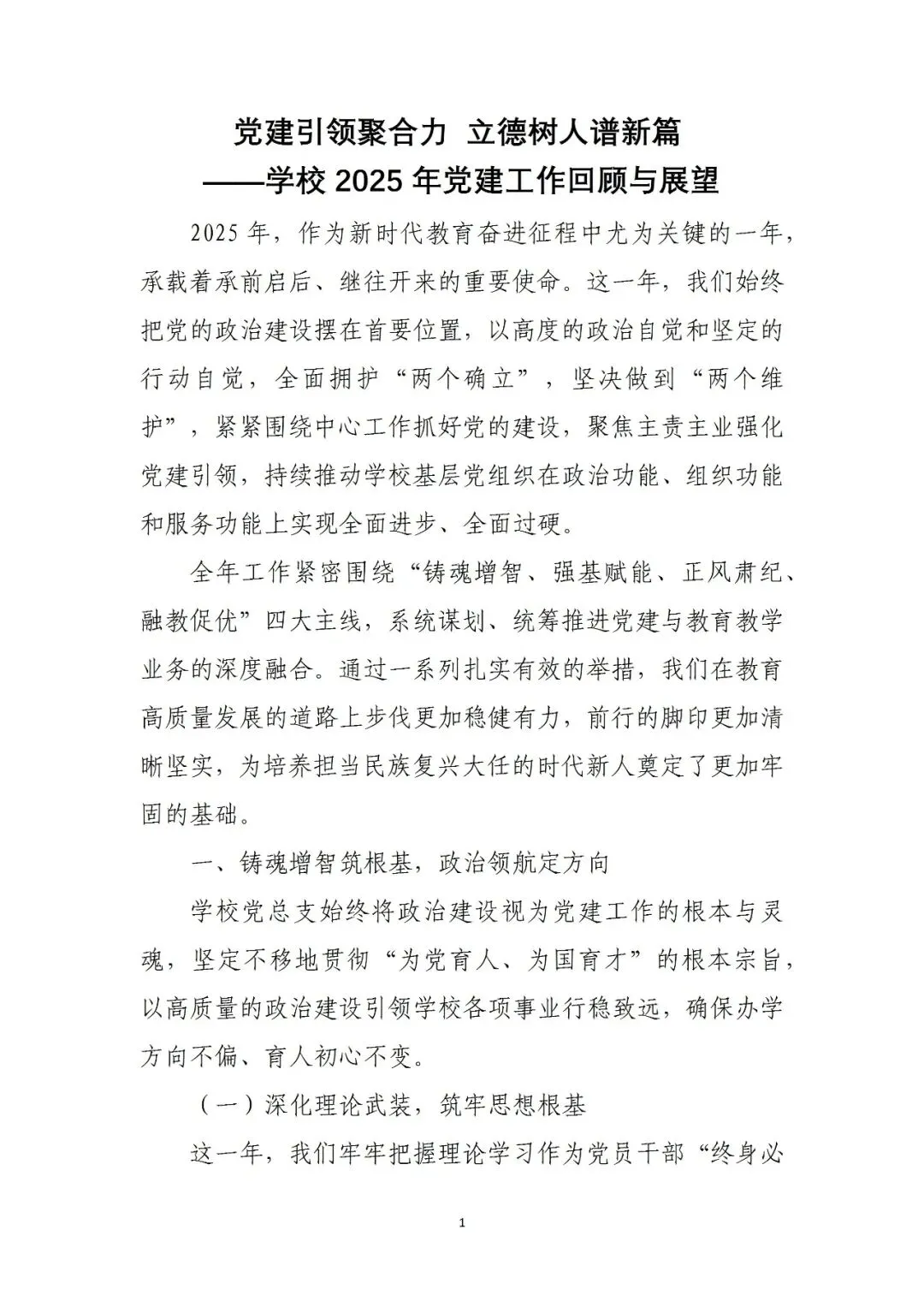 >学校2025年党建工作回顾与展望+(精品版)党支部2025年党建和2026年工作打算(word版)