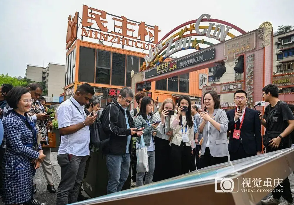 今年重庆两会的一项重要议程,是审查和批准决定重庆未来五年发展方向的“十五五”规划纲要。从历史方位看,“十五五”时期,现代化新重庆建设进入积厚成势、整体跃升的关键阶段。“积厚成势、整体跃升”如何体现?就是要基本建成新时代西部大开发重要战略支点和内陆开放综合枢纽,更好发挥“三个作用”,加快呈现全市域高质量发展、高水平开放、高品质生活、高效能治理的生动图景。报告提出,力争到2030年,全市地区生产总值迈上4万亿元新台阶,基本建成具有国际竞争力的先进制造业中心,基本形成贯通欧洲—中国—东盟三大市场的产业链供应链和物流贸易枢纽,居民主要健康指标居全国前列,现代化人民城市建设取得新的重大进展。路要一步步走,任务要一点点完成。细化到2026年的具体目标,就是地区生产总值增长5%以上,规上工业增加值增长6%,社会消费品零售总额增长4%以上,进出口总值增长5%……值得一提的是,今年报告提出,重庆要重点抓好十一个方面工作,包括多措并举扩大内需,加快构建以先进制造业为骨干的现代化产业体系,聚力打造区域科技创新中心,全力提升成渝地区双城经济圈发展能级等。明确了具体路径,着实催人奋进。▲九龙坡区谢家湾街道民主村社区,外国媒体记者在社区参观。首席记者 龙帆 摄/视觉重庆