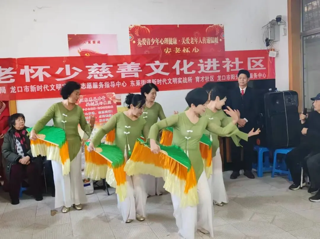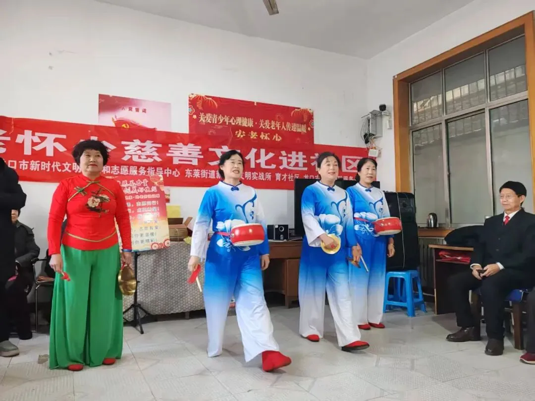 育才社区联合龙口市民政局、龙口市阳光助残服务中心,组织居民观看文艺演出,节目包含歌舞、三句半、慈善知识趣味问答等多种形式,不仅丰富了居民的精神文化生活,促进了社区融合与互助,营造人人可慈善社区暖意浓的良好社会氛围。
