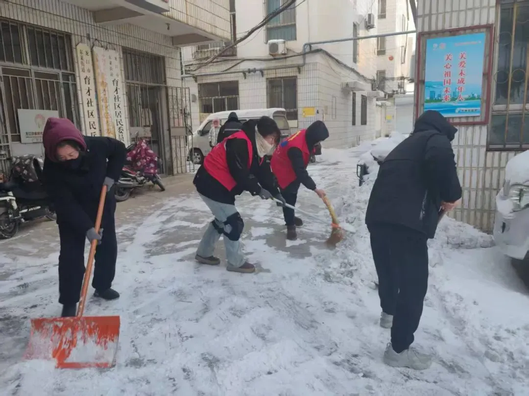 针对1月的降雪天气,社区迅速组织志愿者与工作人员开展扫雪除冰工作,重点对小区主干道进行清理,及时消除了雪天出行隐患,保障了居民日常通行安全。
