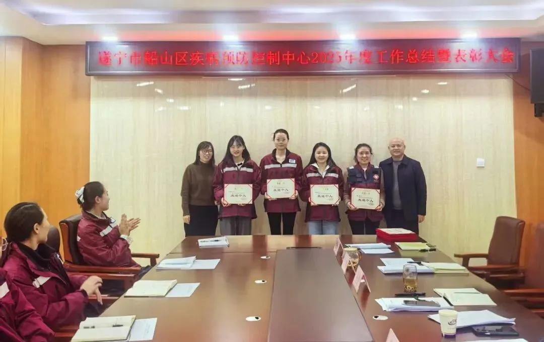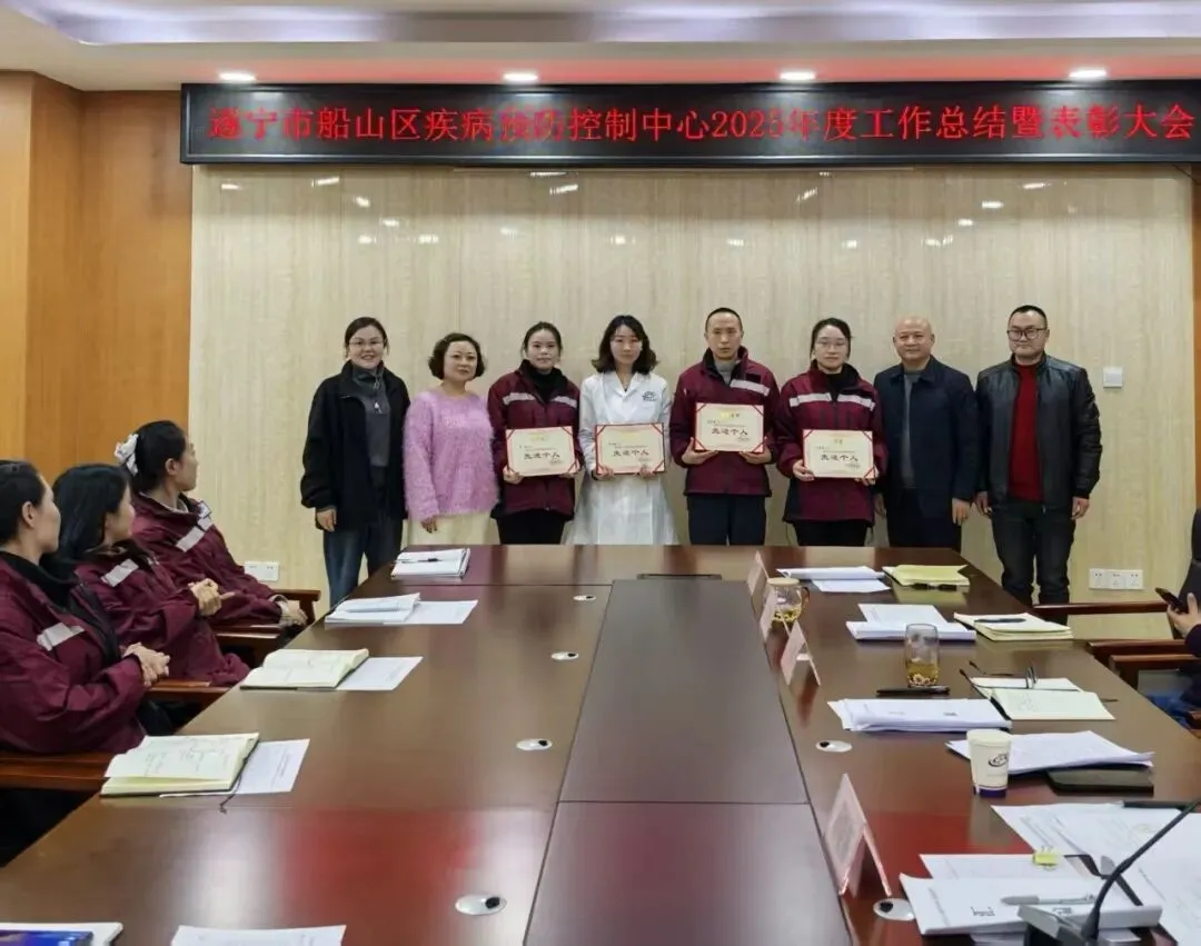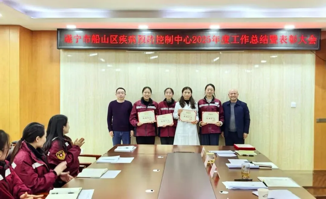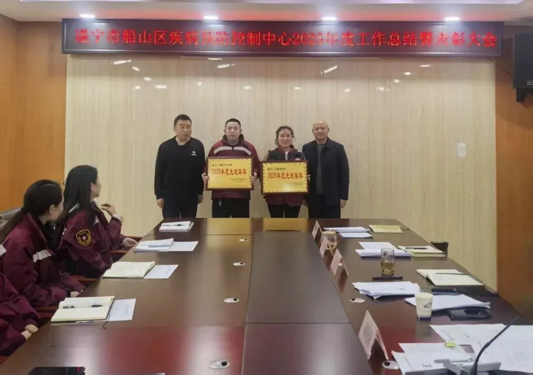 蒋晓海指出,2025年,船山区疾控中心以习近平新时代中国特色社会主义思想为指引,深入贯彻党的二十大及历次全会精神,全体职工履职尽责、担当作为,以“健康船山”建设为目标,以“效率革命”专项行动为抓手,顺利完成疾控体系改革、党支部换届和“二级甲等”疾控机构创建等重大任务,实现党建和业务深度融合深度整合,疾控中心综合能力全面提升。获得国家级肿瘤登记工作进步奖、四川省职业健康技能竞赛-职业卫生监测评估团体三等奖、遂宁市2025年消毒技能竞赛一等奖、遂宁市职业健康技能竞赛一等奖。