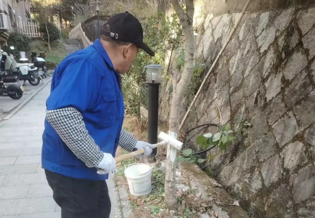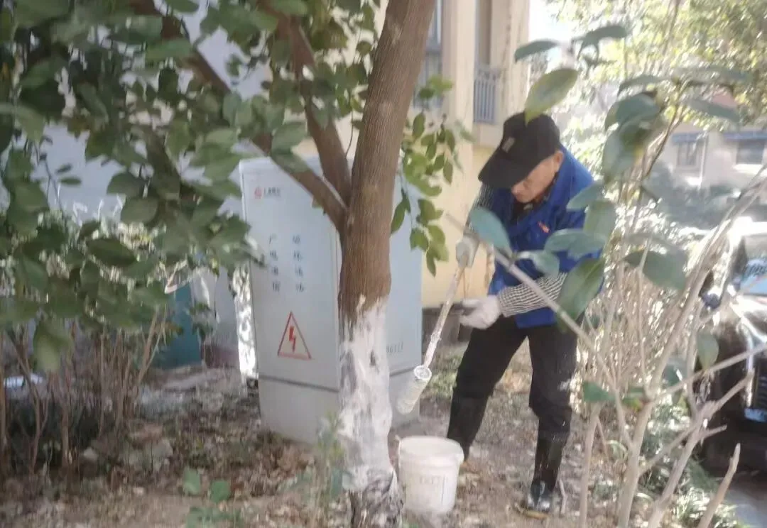 1、冬季给树木刷防冻防虫石灰、捡白色垃圾