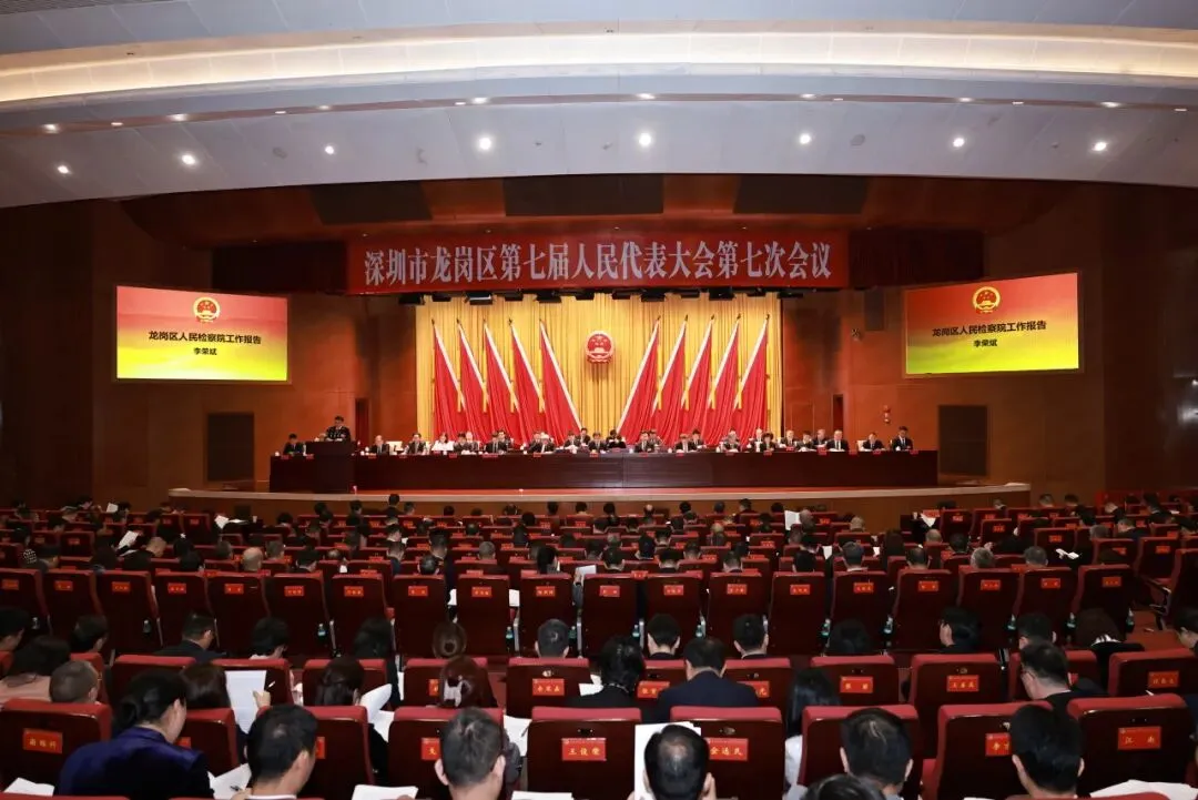 2026年1月27日至28日,龙岗区第七届人民代表大会第七次会议顺利召开。1月28日上午,龙岗区检察院党组书记、检察长李荣斌向大会作2025年工作报告。经参会代表审议并投票表决,工作报告以99.7%的赞成率高票通过!