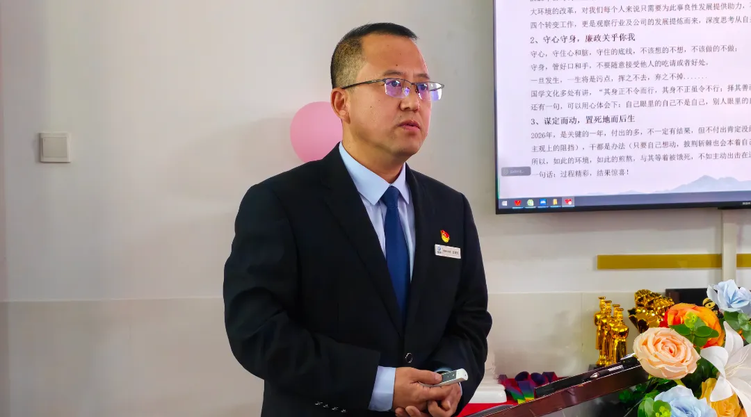 公司董事长发表讲话,全面复盘2025年工作成效,提出存在的短板和不足。为向顾客提供更优质的服务,董事长就2026年战略方向提出要求,强调深耕核心业务、强化团队赋能、升级精细化管理,为全年工作划重点、明路径。