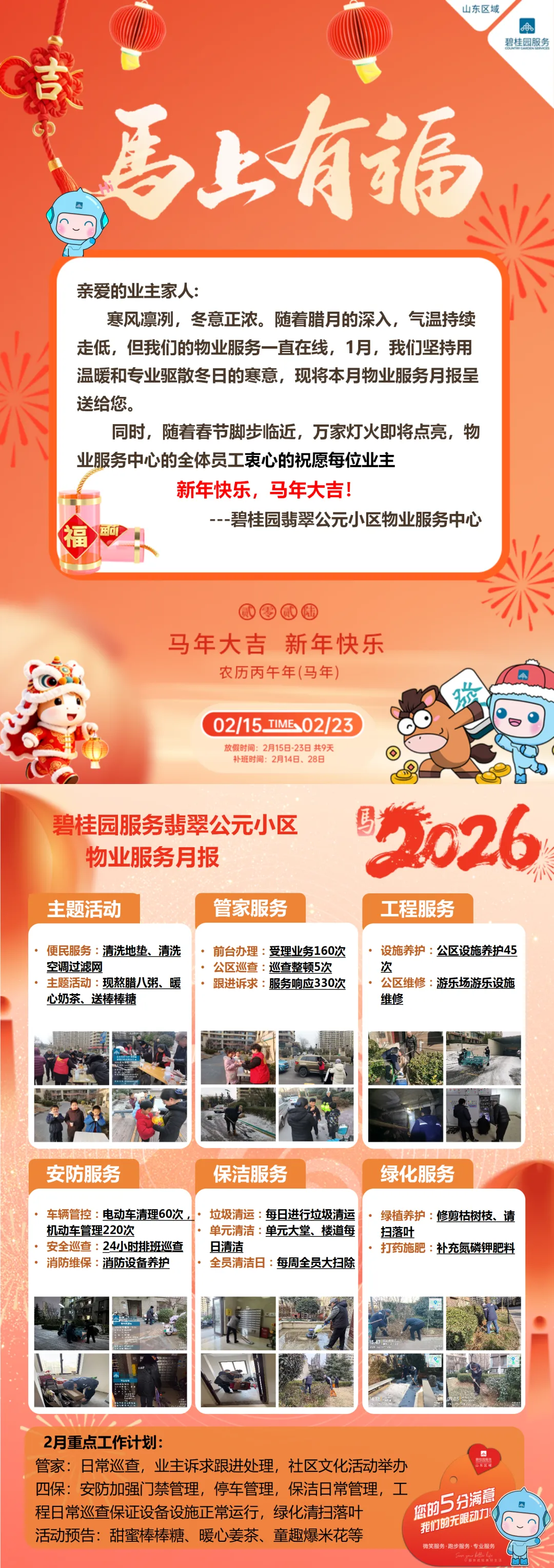 同时,随着春节脚步临近,万家灯火即将点亮,物业服务中心的全体员工衷心的祝愿每位业主