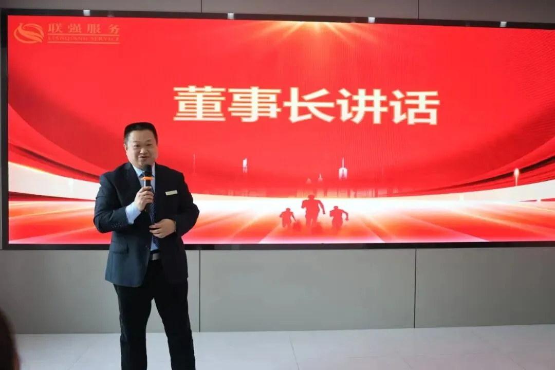 会议最后,联强服务董事长张广辉为大会致辞,他指出:站在2025年的终点回望,我们可以自信地说:联强服务已在市场中初步站稳脚跟,形成了自身的影响力,迈出了坚实有力的第一步。 走进2026年,挑战将更加严峻,道路也将更加崎岖;当前我们最重要的任务,是统一思想、凝心聚力、期待我们能彼此成就、共同成长;员工的成长,就是公司的成长;公司的发展不追求最快,但每一步都必须踏实、稳健;2026年,我们要立足各项目实际,制定可执行、可衡量、可追溯的目标及计划,用结果说话,让业主满意,真正做到“用心承诺,用爱负责”。 最后张总谨代表公司祝大家:工作顺利,马到成功!也借此机会,向所有在背后默默支持的员工家人们致以最诚挚的感谢。2025,我们以奋斗为笔,写下了不平凡的一页;2026,我们将蓄势待发,聚力前行,用行动为业主送上更贴心的服务!