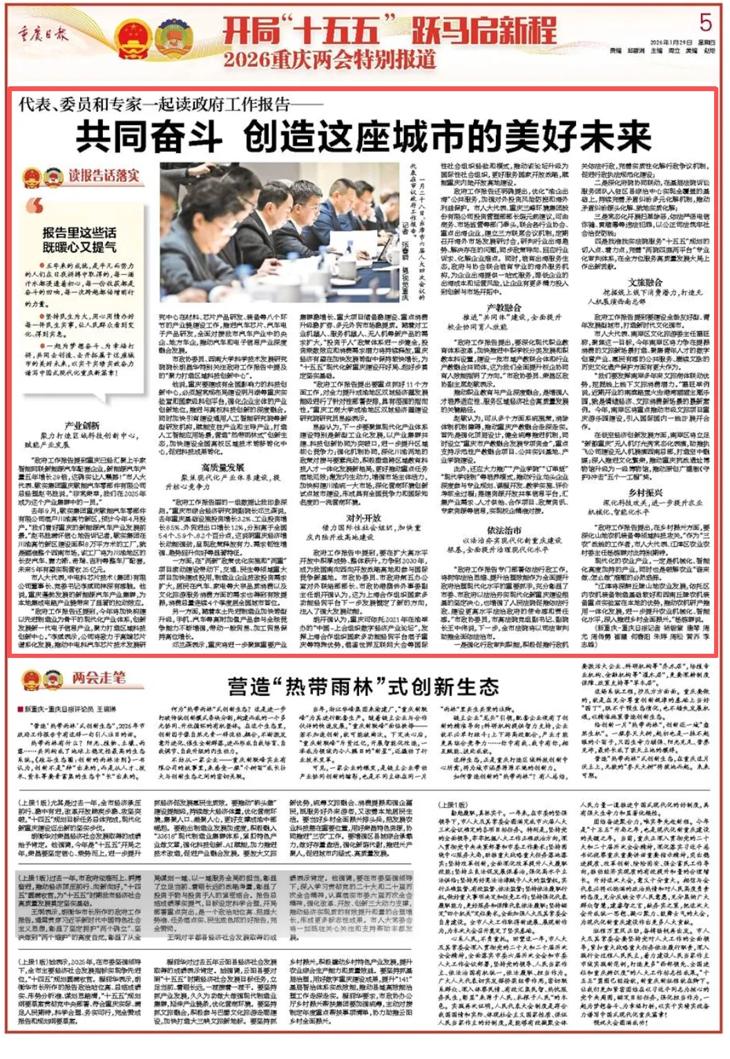 邓兰燕表示,重庆将进一步聚焦重要产业集群稳增长、重大项目储备稳建设、重点消费升级稳扩容、多元外贸市场稳提质。随着对工业机器人、服务机器人、无人机等新产品的需求扩大,“投资于人”政策体系进一步健全,投资乘数效应和消费需求潜力将持续释放,重庆经济有望在加快发展转型中保持较快增长,为“十五五”现代化新重庆建设开好局、起好步奠定坚实基础。