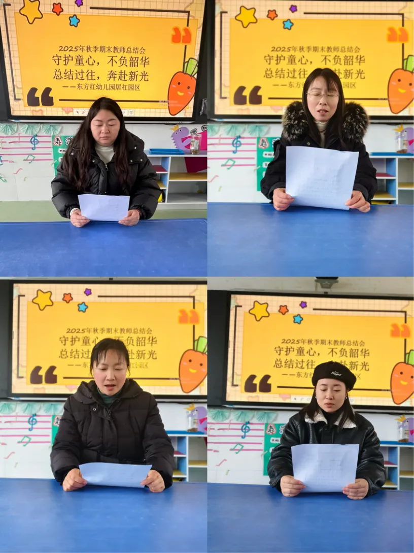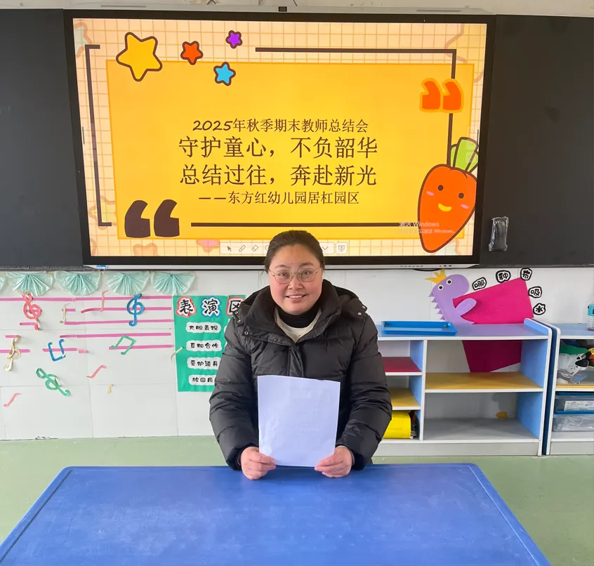 新的征程,武穴市东方红幼儿园居杠园区全体教职工将继续怀揣对教育的热爱与初心,把复盘的收获转化为前行的力量,把刘园长的期许转化为实践的行动,用爱心呵护童真,用专业滋养成长,用陪伴书写温暖。让我们携手并肩,不负时光,不负韶华,共同为孩子们打造一个充满爱、欢乐与成长的幸福家园!愿每一份努力都有回响,愿每一个孩子都能向阳而生!