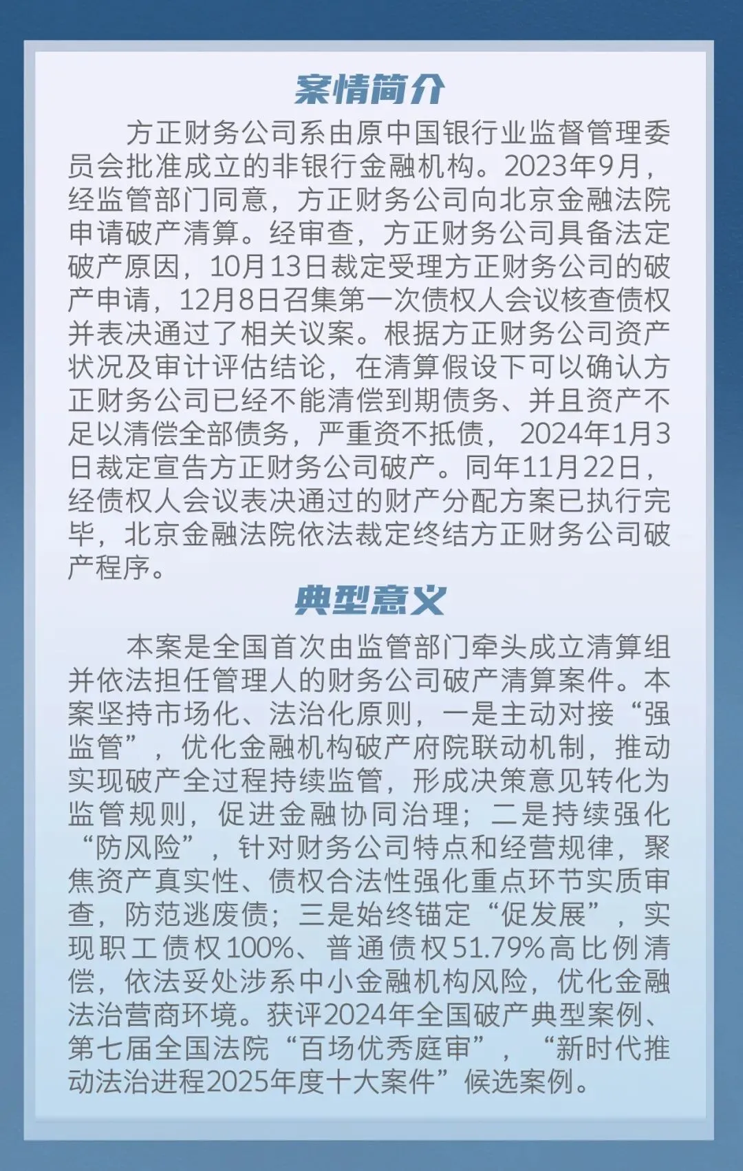 依法审结破产案件964件,通过破产重整挽救专精特新企业27家,引入投资17亿元,化解债务79亿元,“方正财务公司破产清算案”获评全国破产经典案例。