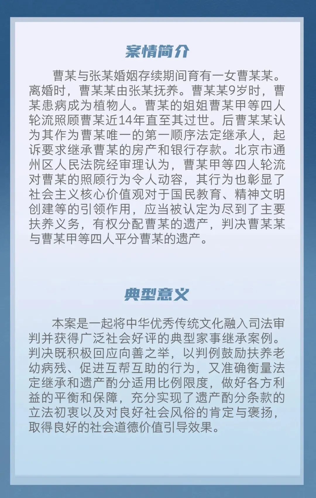 照顾植物人弟弟14年的姐姐与第一顺序法定继承人均分遗产案