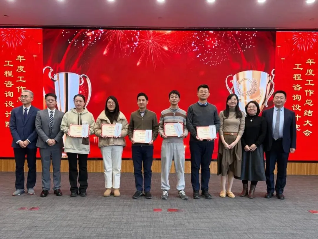 物流所王超凡、照明所王冬旭、结构三所时言、结构二所熊羽豪、低碳所关运龙获评为工程咨询设计院2025年度“先进个人”。总经理刘枫为获奖者颁奖,并与咨询院管理团队及全体“先进个人”合影留念。