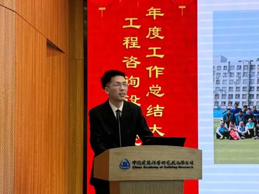 总结大会进入第二项议程,由工程咨询设计院副院长赵鹏飞作2025年度科研工作报告。系统总结了全年科研工作进展与成果,汇报了院内外的个人与项目获奖情况,同时介绍了2025年工程咨询设计院“优秀成果奖”的评选过程及最终获奖名单。