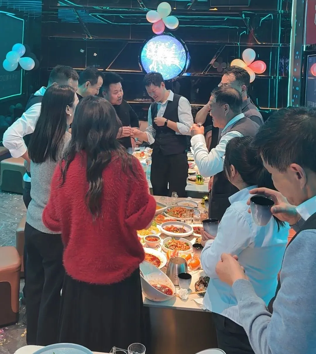 年度总结会议圆满落幕后,温馨热闹的会餐与趣味互动游戏环节接续开启。全体同仁欢聚一堂,举杯共庆过往一年的并肩硕果,在欢声笑语中增进彼此情谊、凝聚团队同心;趣味纷呈的互动游戏轮番开展,大家踊跃参与、默契配合,现场掌声与欢笑声交织不断。轻松愉悦的氛围,既舒缓了平日工作的忙碌与疲惫,更让团队间的凝聚力与向心力持续升温,为此次公司年度盛会画上了圆满而温暖的句号。