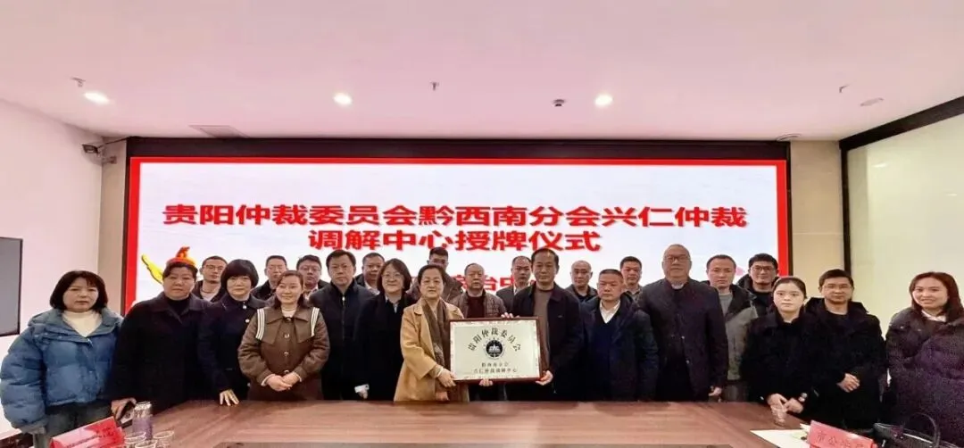 1月27日、28日,贵阳仲裁委员会黔西南分会召开2025年度工作总结暨仲裁员座谈会并举行兴仁仲裁调解中心授牌仪式。本会主任卜贵荣、副主任王常毅出席会议及授牌仪式,黔西南分会相关负责人、全体仲裁员参加会议,兴仁市委常委、政法委书记白品华出席授牌仪式并讲话。