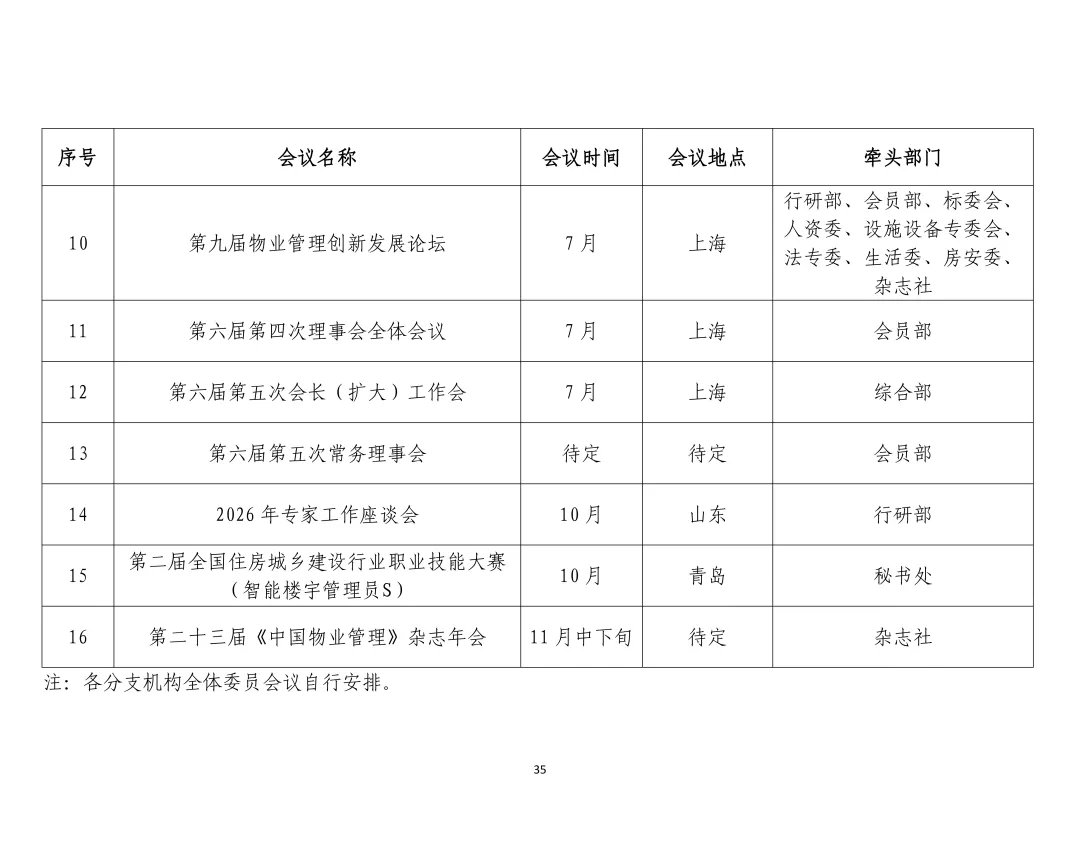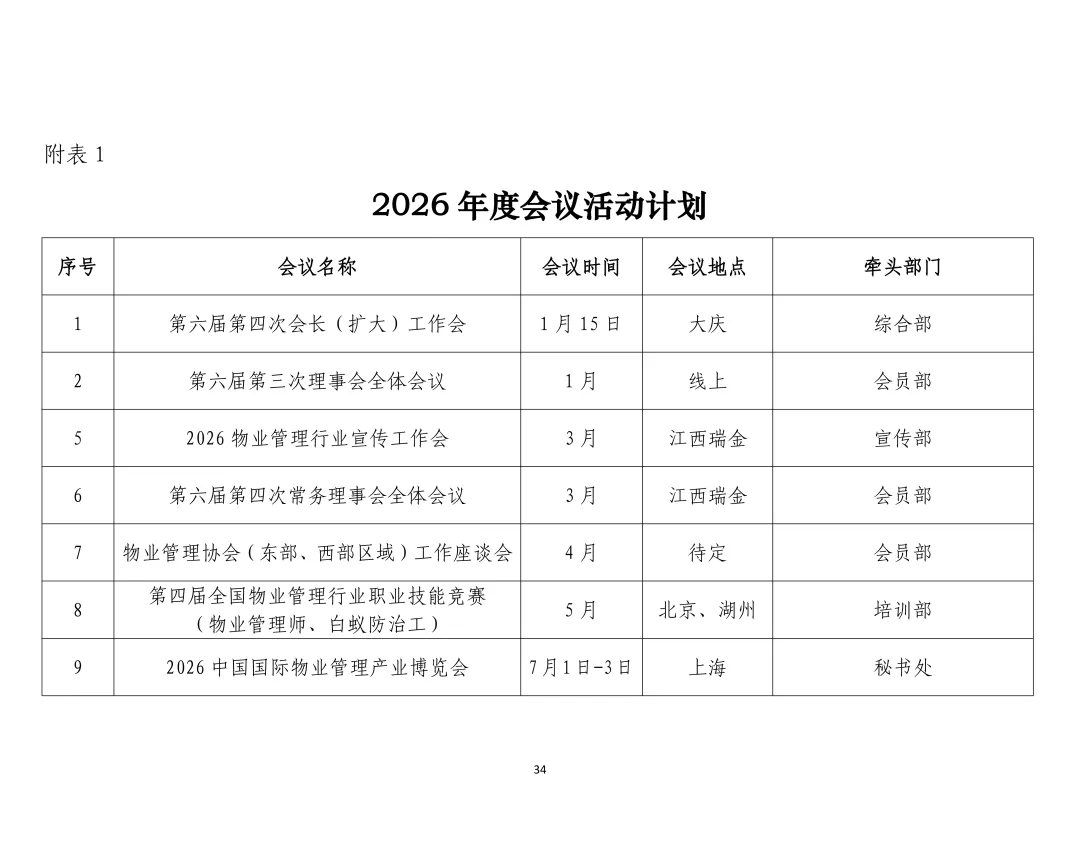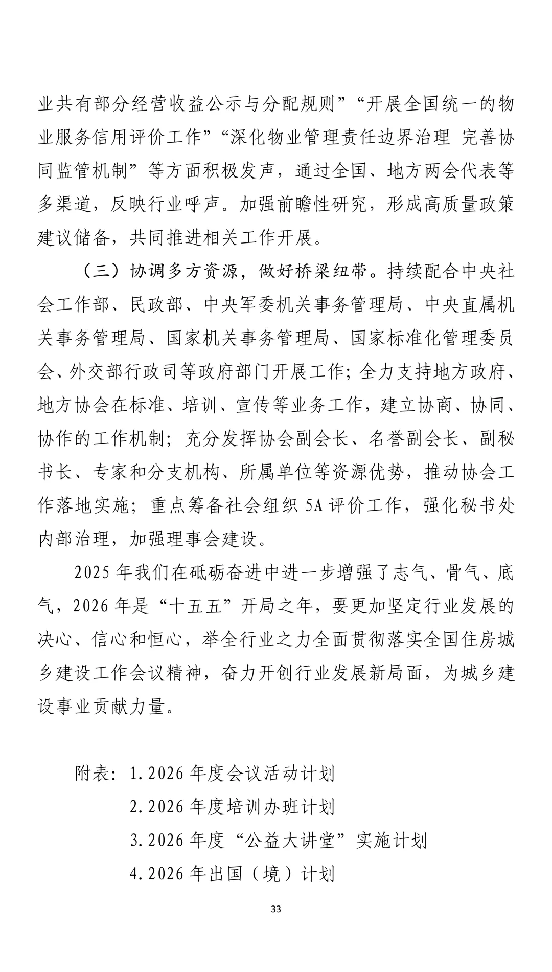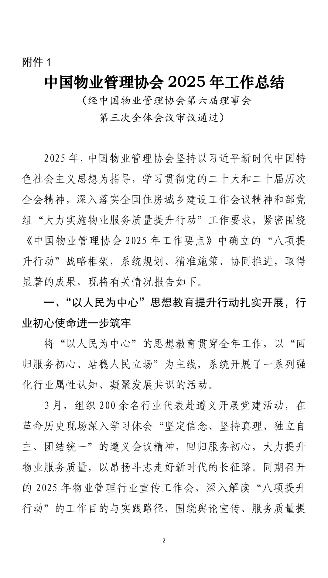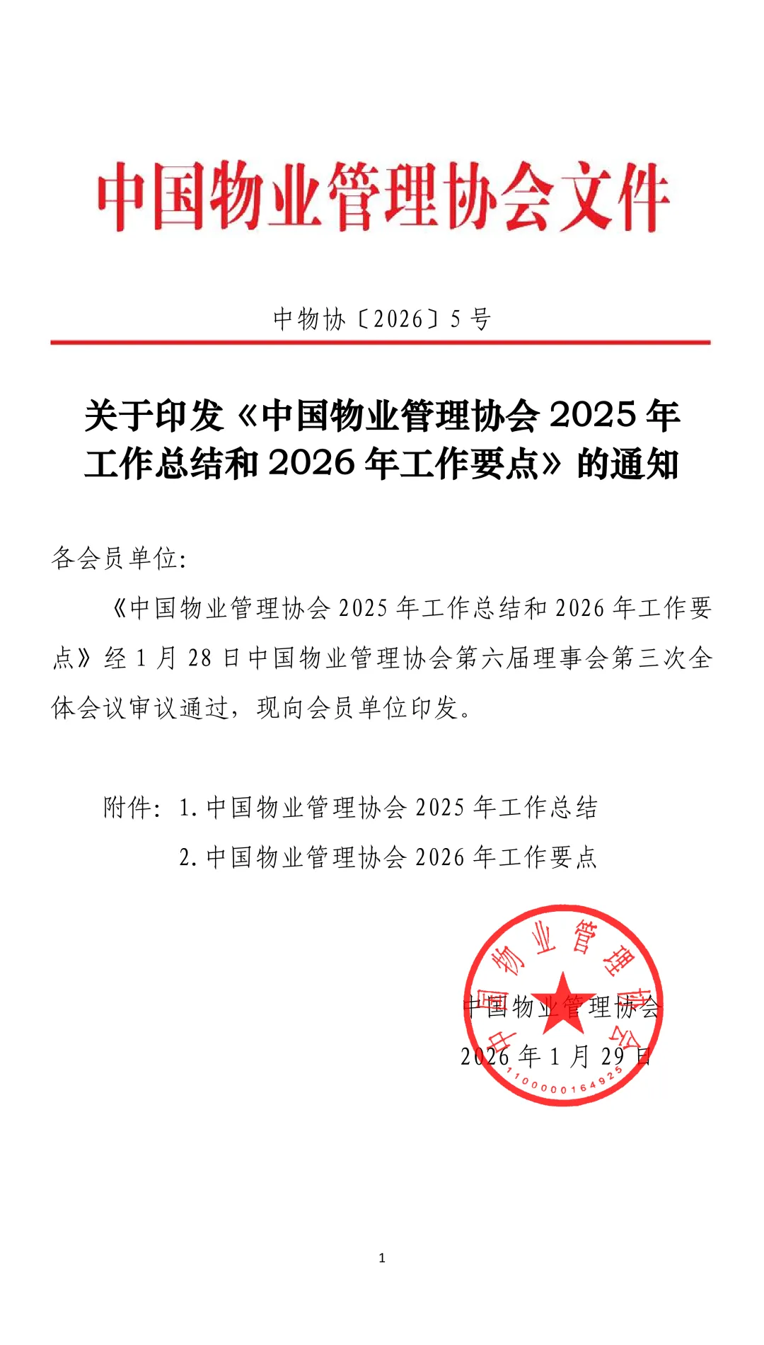 >关于印发《中国物业管理协会2025年工作总结和2026年工作要点》的通知