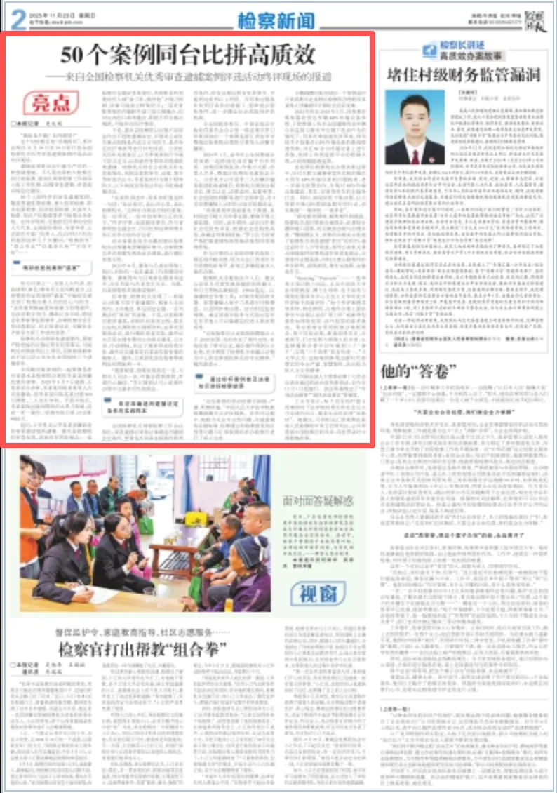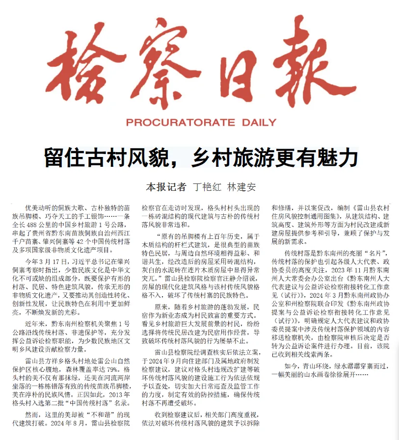 “黔东南州检察机关围绕保护488公里的‘中国乡村旅游1号公路’,通过公益诉讼推动解决非遗保护、安全设施等问题76个,让‘1号公路’成为沿线42个传统村落的安全路、致富路。”