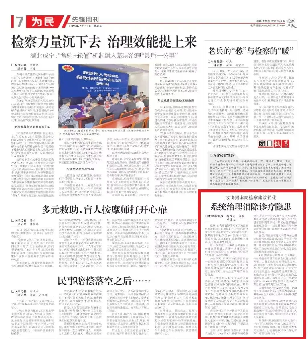 “黔西南州检察机关认真办理政协委员‘规范村级医疗机构建设’的联名提案,监督推动相关部门开展专项治理,规范了1400余个村级医疗机构建设,助力解决基层医疗薄弱等问题。”
