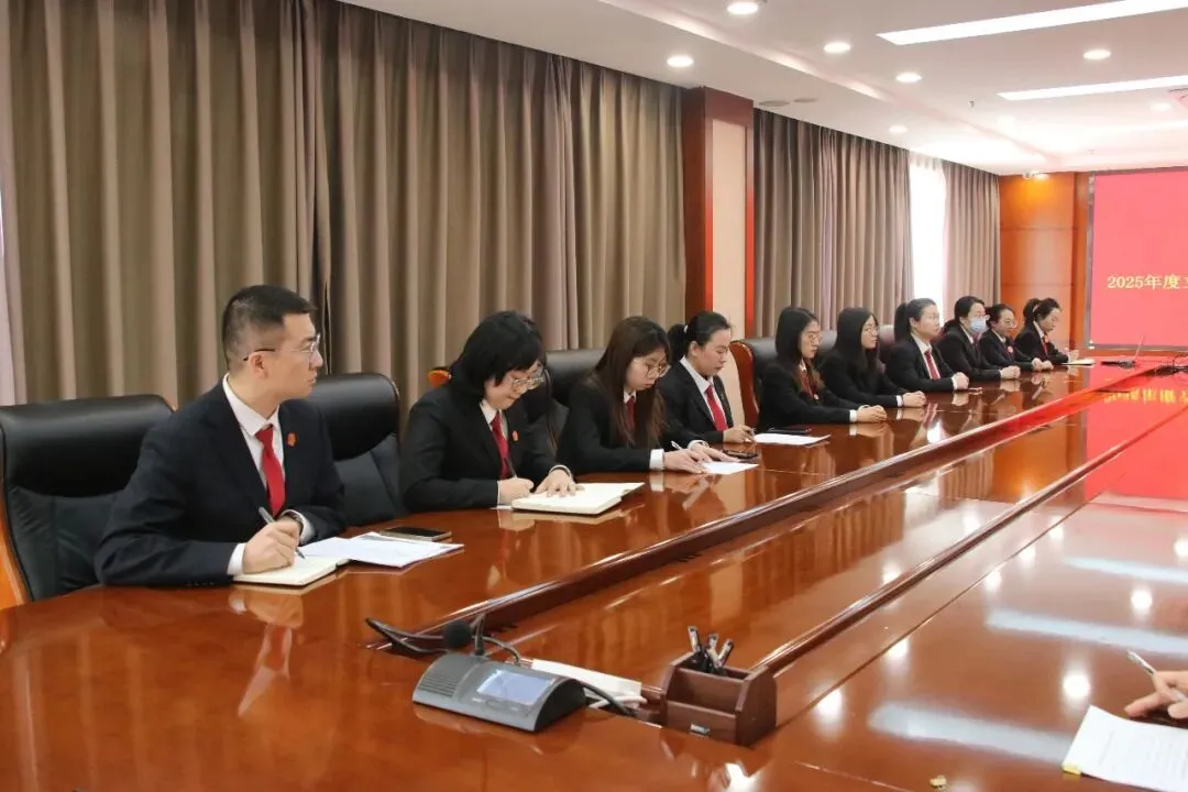 近日,按照院党组统一安排部署,我院立案、信访、审管部门联合召开2025年度工作总结大会,全面复盘全年工作成效,精准剖析短板不足,科学谋划下一步工作方向。党组成员、副院长李竑作为分管领导主持会议,立案、信访、审管全体干警参加。
