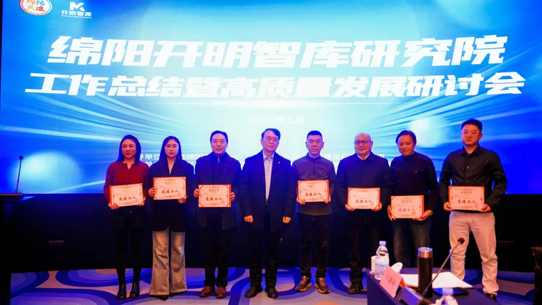 1月27日上午,绵阳开明智库研究院(以下简称“开明智库”)2025年度工作总结暨高质量发展研讨会隆重举行。本次会议以“汇智聚力·共谋新篇”为主题,全面回顾2025年工作成效,系统谋划未来发展方向。
