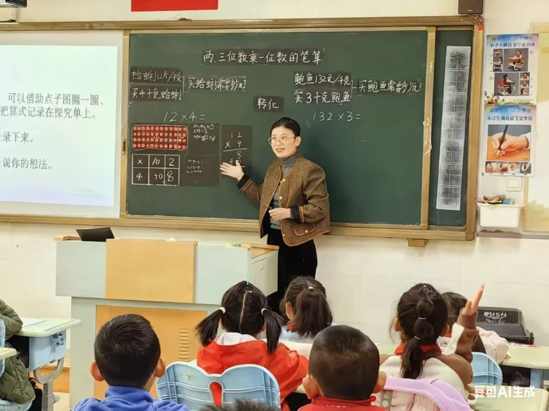 课堂是教学的主阵地。三尺讲台之上,教师们以灵动教学设计为笔,以趣味教学方法为墨,将抽象数学知识转化为具象探究之旅。本学期进行《三位数乘一位数笔算》《智慧广场》《多位数乘一位数回顾整理》等教学展示。