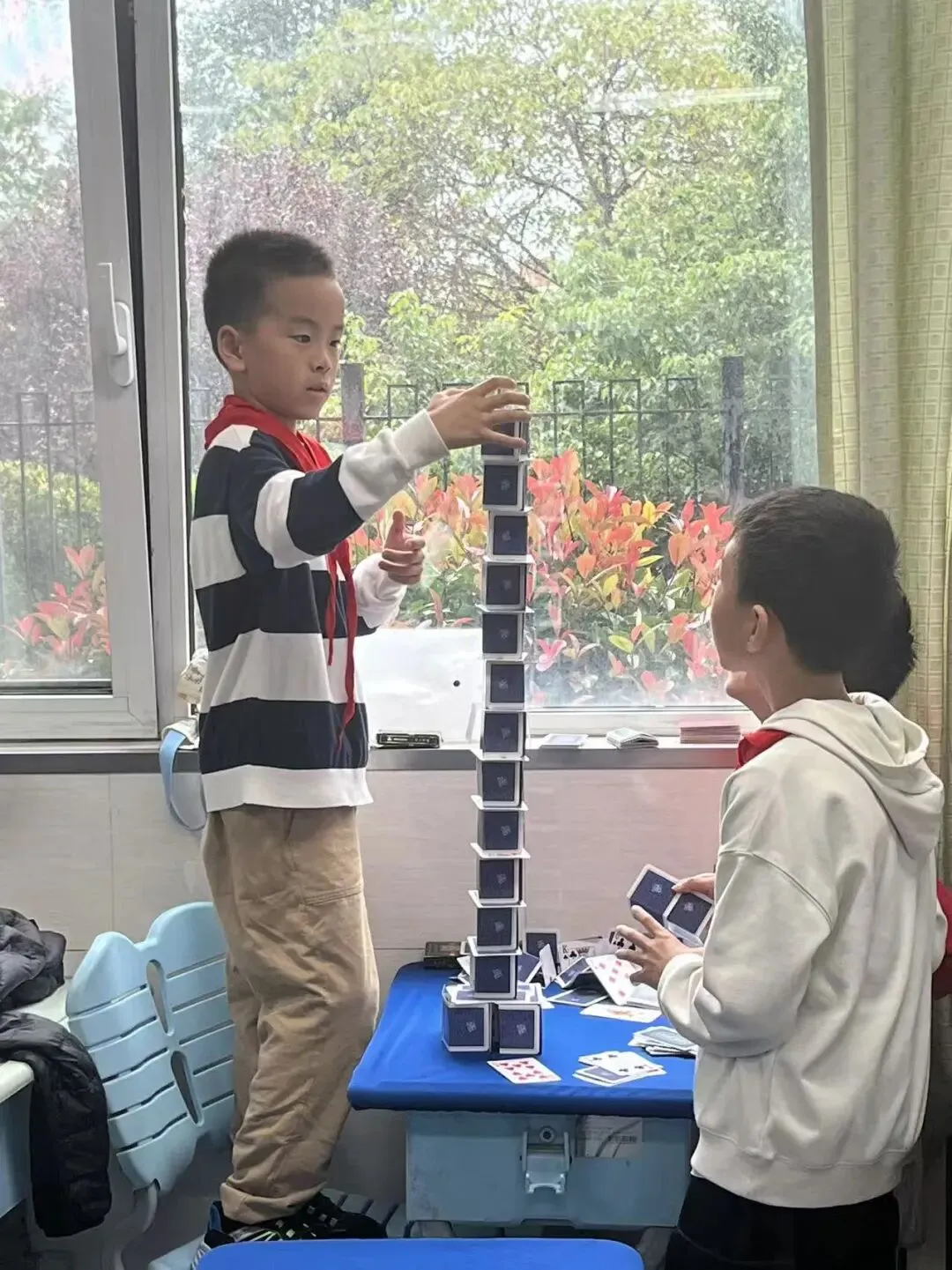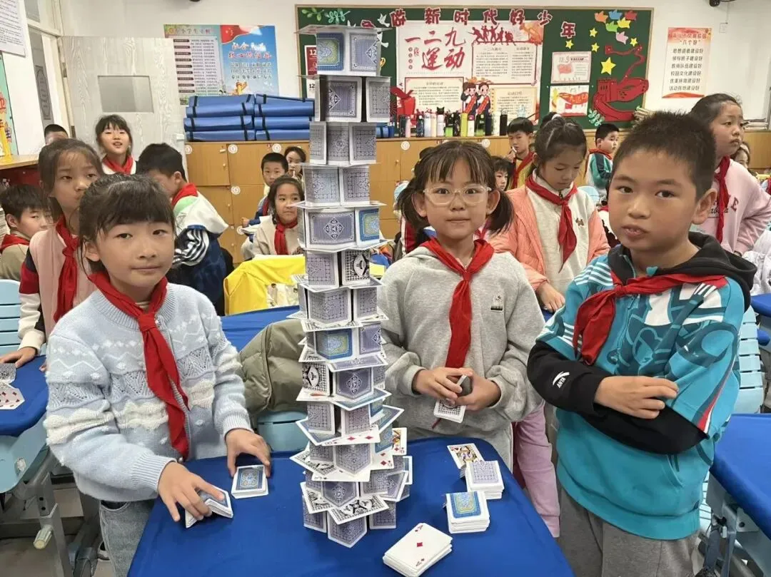 纸牌高塔挑战赛利用纸牌搭建高塔,在动手实践中探索平衡原理、几何结构,既锻炼了空间想象能力与动手操作能力,又培养了团队协作与问题解决能力,现场气氛热烈,创意层出不穷。