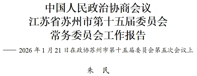 2026年是“十五五”开局之年。市政协常委会要在中共苏州市委的坚强领导下,坚持以习近平新时代中国特色社会主义思想为指导,深入学习贯彻中共二十大和二十届历次全会精神,紧扣习近平总书记对江苏、苏州工作和政协工作重要讲话重要指示精神,严格落实中共中央决策部署及省委、市委工作安排,持续深入推进专门协商机构建设,着力在凝聚共识上展现新作为、在议政建言上取得新成效、在服务大局上作出新贡献,为苏州“十五五”开好局、起好步,广泛凝聚智慧、汇聚力量。
