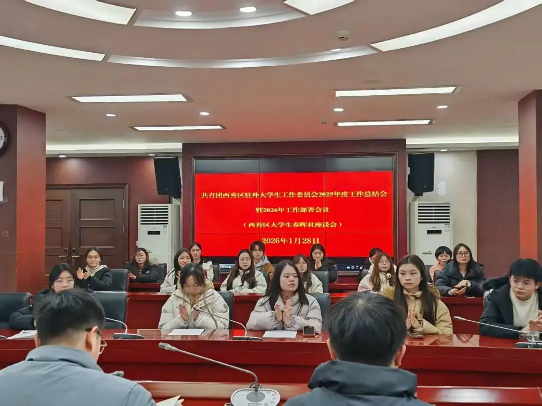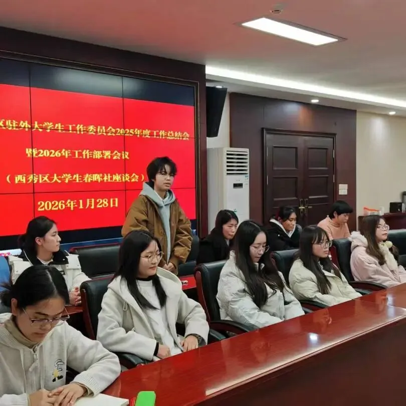 冬藏蓄力,春启新程。过去一年,是我们砥砺奋进、硕果累累的一年。共青团西秀区驻外大学生工作委员会始终坚守“服务青年、联络青年、引领青年”的初心,以思想引领为核心,以实践活动为载体,团结广大西秀区籍大学生坚定理想信念、勇担时代使命,在思想引领、返乡实践服务等方面交出了亮眼答卷。西秀区大学生春晖社则秉承“感恩、自强、奉献、反哺”的春晖精神,扎根故土、心系乡亲,积极开展志愿活动,用青春力量为家乡发展添砖加瓦,用实际行动诠释了新时代大学生的责任与担当。2026年1月28号共青团西秀区驻外大学生工作委员会于西秀区行政中心1栋4楼召开共青团西秀区驻外大学生工作委员会2025年度工作总结表彰会暨2026年工作部署会议。