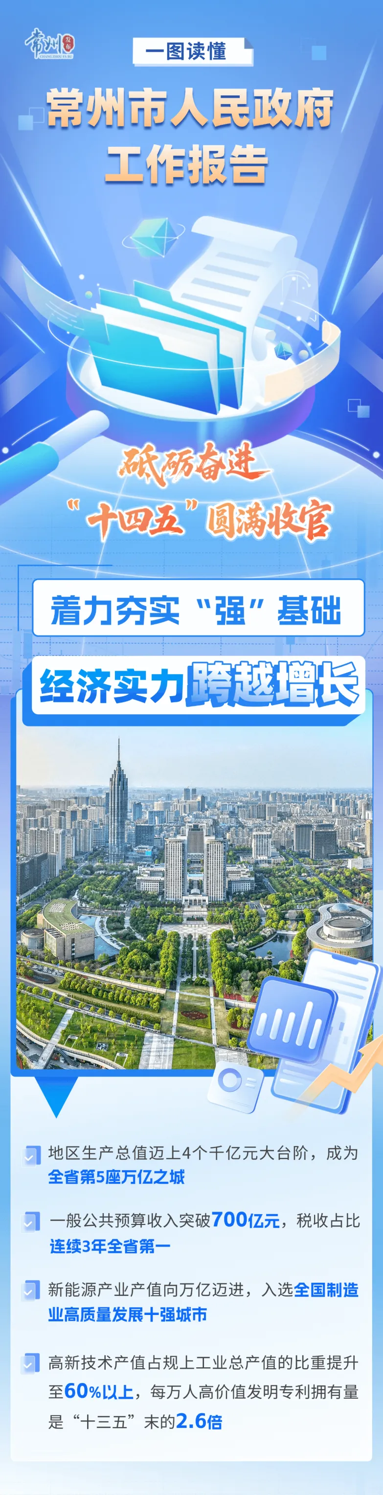 “十四五”各项成绩的取得,根本在于以习近平同志为核心的党中央掌舵领航,在于习近平新时代中国特色社会主义思想科学指引,是党中央国务院、省委、省政府和市委坚强领导的结果,是市人大、市政协和社会各界监督支持的结果,是全市人民团结奋斗的结果。在此,我代表市人民政府,向辛勤工作在各个领域的全市人民,向各位人大代表和政协委员,向各民主党派、工商联、无党派人士、人民团体,向广大企业家、科教文卫工作者等社会各界人士,向驻常人民解放军和武警官兵、公安政法干警、消防救援人员及部省驻常单位,向关心支持常州发展的海内外朋友,表示崇高的敬意和衷心的感谢!