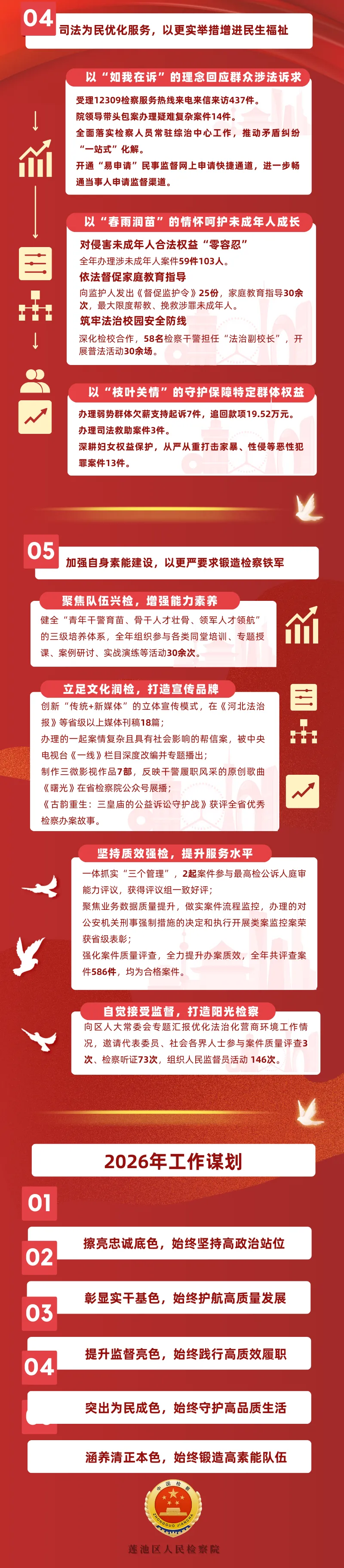 回望这一年,莲池区人民检察院始终坚持以习近平新时代中国特色社会主义思想为指导,深入践行习近平法治思想,在区委和上级院的坚强领导下,在区人大及其常委会的有力监督下,在区政府、区政协和社会各界的关心支持下,全面贯彻落实党的二十大和二十届历次全会精神,忠实履行宪法法律赋予的监督职责,坚持高质效办案本职本源,为大局服务、为人民司法、为法治担当,以检察工作现代化服务保障建设更高水平的法治莲池、平安莲池。