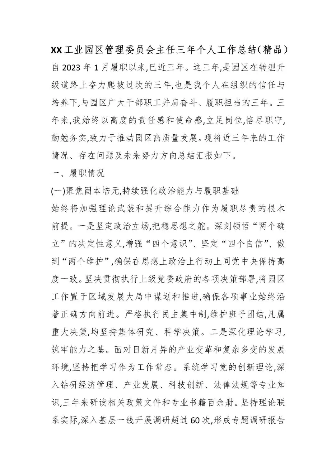 XX工业园区管理委员会主任三年个人工作总结